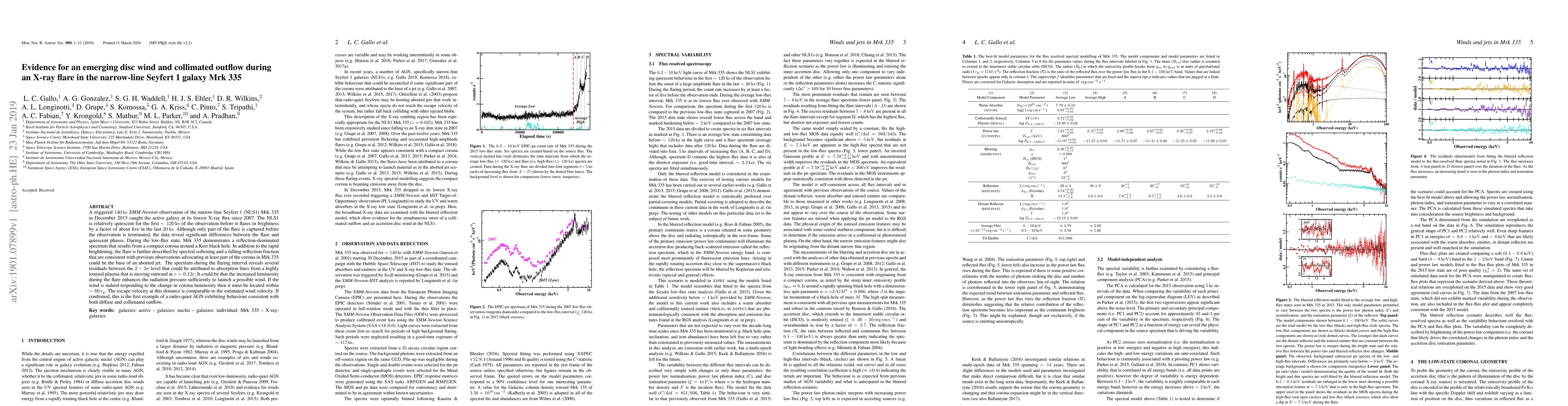 A triggered 140 ks XMM-Newton observation of the narrow-line Seyfert 1 (NLS1) Mrk 335 in December 2015 caught the active galaxy at its lowest X-ray flux since 2007. The NLS1 is relatively quiescent for the first ~120 ks of the observation before it flares in brightness by a factor of about five in the last 20 ks. Although only part of the flare is captured before the observation is terminated, the data reveal significant differences between the flare and quiescent phases. During the low-flux state, Mrk 335 demonstrates a reflection-dominated spectrum that results from a compact corona around a Kerr black hole. In addition to the rapid brightening, the flare is further described by spectral softening and a falling reflection fraction that are consistent with previous observations advocating at least part of the corona in Mrk 335 could be the base of an aborted jet. The spectrum during the flaring interval reveals several residuals between the 2-3 sigma level that could be attributed to absorption lines from a highly ionised plasma that is moving outward at v~0.12c. It could be that the increased luminosity during the flare enhances the radiation pressure sufficiently to launch a possible wind. If the wind is indeed responding to the change in corona luminosity then it must be located within ~80 Rg. The escape velocity at this distance is comparable to the estimated wind velocity. If confirmed, this is the first example of a radio-quiet AGN exhibiting behaviour consistent with both diffuse and collimated outflow.
