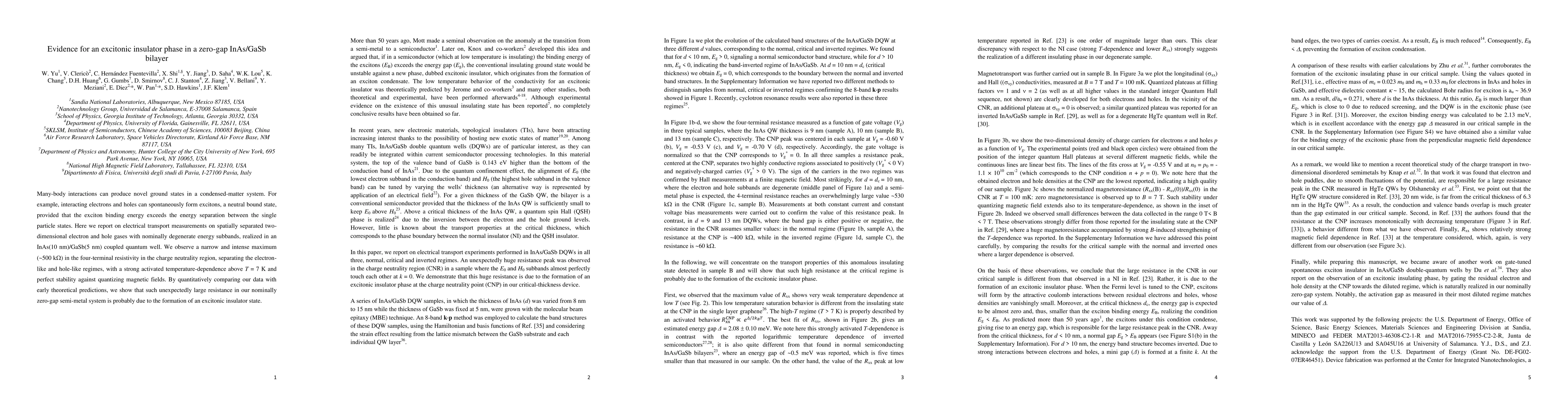 Many-body interactions can produce novel ground states in a condensed-matter system. For example, interacting electrons and holes can spontaneously form excitons, a neutral bound state, provided that the exciton binding energy exceeds the energy separation between the single particle states. Here we report on electrical transport measurements on spatially separated two-dimensional electron and hole gases with nominally degenerate energy subbands, realized in an InAs(10 nm)/GaSb(5 nm) coupled quantum well. We observe a narrow and intense maximum (~500 k\Omega) in the four-terminal resistivity in the charge neutrality region, separating the electron-like and hole-like regimes, with a strong activated temperature-dependence above T = 7 K and perfect stability against quantizing magnetic fields. By quantitatively comparing our data with early theoretical predictions, we show that such unexpectedly large resistance in our nominally zero-gap semi-metal system is probably due to the formation of an excitonic insulator state.