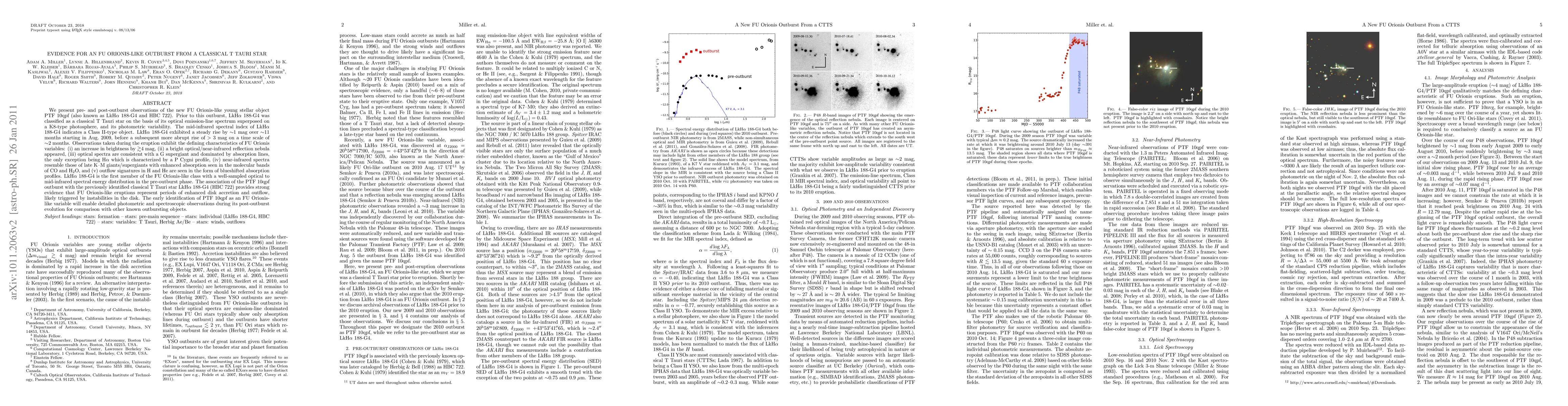 This paper reports the first FU Orionis-like outburst from the classical T Tauri star LkHa 188-G4, characterized by a significant increase in brightness and the appearance of a reflection nebula. The findings suggest that such eruptions are periods of enhanced disk accretion and outflow, likely triggered by disk instabilities.