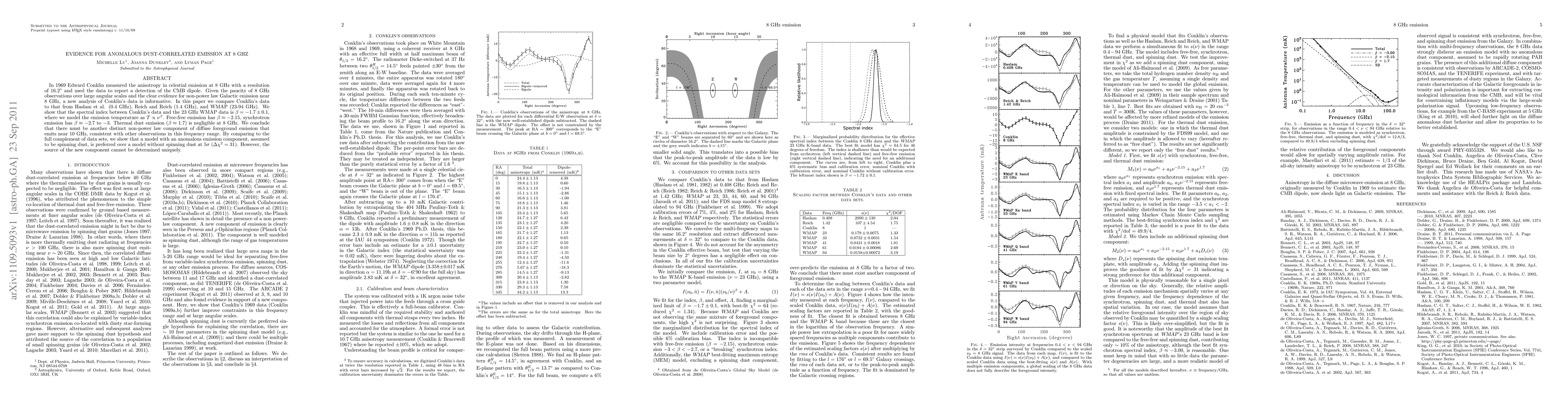In 1969 Edward Conklin measured the anisotropy in celestial emission at 8 GHz with a resolution of 16.2 degrees and used the data to report a detection of the CMB dipole. Given the paucity of 8 GHz observations over large angular scales and the clear evidence for non-power law Galactic emission near 8 GHz, a new analysis of Conklin's data is informative. In this paper we compare Conklin's data to that from Haslam et al. (0.4 GHz), Reich and Reich (1.4 GHz), and WMAP (23-94 GHz). We show that the spectral index between Conklin's data and the 23 GHz WMAP data is beta=-1.7+-0.1, where we model the emission temperature as T \propto nu^beta. Free-free emission has beta \approx -2.15, synchrotron emission has beta \approx -2.7 to -3. Thermal dust emission (beta \approx1.7) is negligible at 8 GHz. We conclude that there must be another distinct non-power law component of diffuse foreground emission that emits near 10 GHz, consistent with other observations in this frequency range. By comparing to the full complement of data sets, we show that a model with an anomalous emission component, assumed to be spinning dust, is preferred over a model without spinning dust at 5 sigma (Delta chi2= 31). However, the source of the new component cannot be determined uniquely.