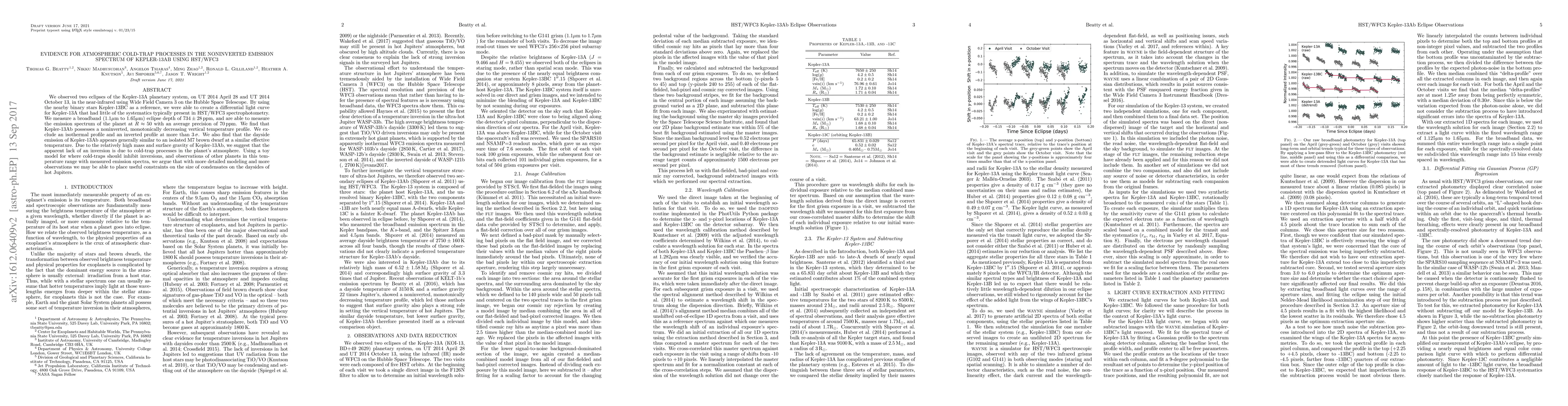 This study uses HST/WFC3 to observe the eclipse of Kepler-13Ab and finds a noninverted, monotonically decreasing temperature profile in its emission spectrum. The lack of an inversion suggests atmospheric cold-trap processes, which may help constrain condensate sizes on hot Jupiters.