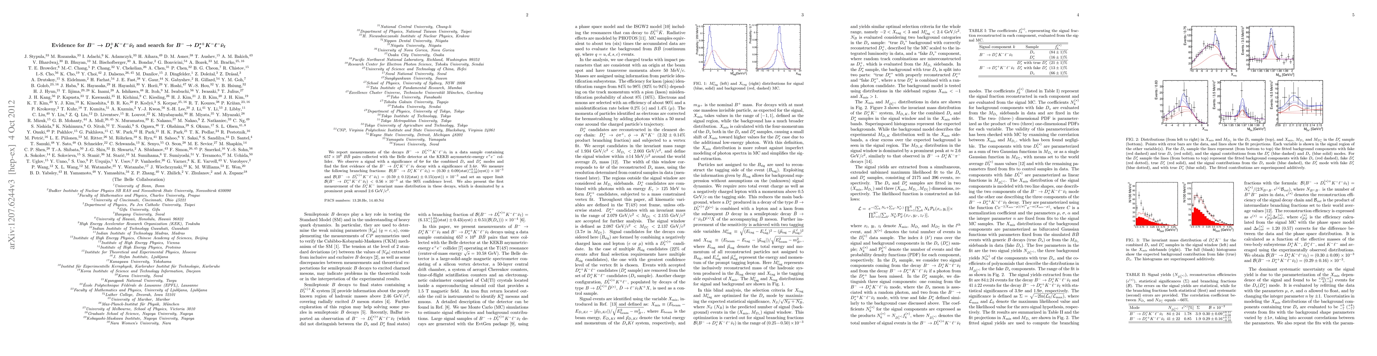 We report measurements of the decays B- -> Ds(*)+ K- l- nubar in a data sample containing 657x10^6 BBbar pairs collected with the Belle detector at the KEKB asymmetric-energy e+e- collider. We observe a signal with a significance of 6 sigma for the combined Ds and Ds* modes and find the first evidence of the B- -> Ds+ K- l- nubar decay with a significance of 3.4 sigma. We measure the following branching fractions: BF(B- -> Ds+ K- l nubar) = (0.30 +/- 0.09(stat) +0.11 -0.08(syst)) x 10^-3 and BF(B- -> Ds*+ K- l- nubar) = (0.59 +/- 0.12(stat) +/- 0.15(syst)) x 10^-3 and set an upper limit BF(B- -> Ds*+ K- l- nubar) < 0.56 x 10^-3 at the 90% confidence level. We also present the first measurement of the Ds+K- invariant mass distribution in these decays, which is dominated by a prominent peak around 2.6 GeV/c^2.