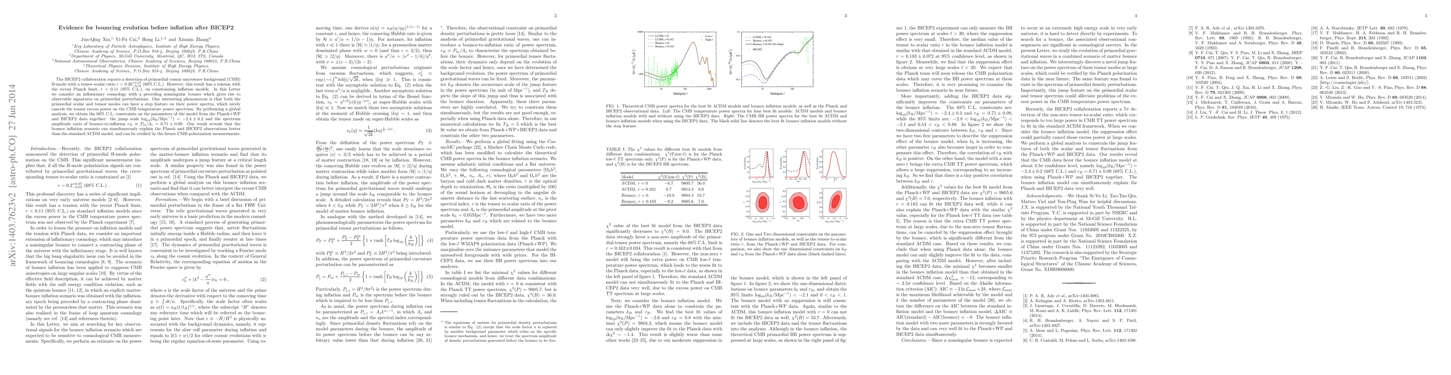 The BICEP2 collaboration detected a tensor-scalar ratio suggesting primordial B-modes, but this conflicts with Planck's inflation constraints. This paper proposes a bounce inflation model preceding standard inflation, which can cancel tensor excess and better explain both Planck and BICEP2 data, with future CMB polarization measurements potentially verifying this scenario.