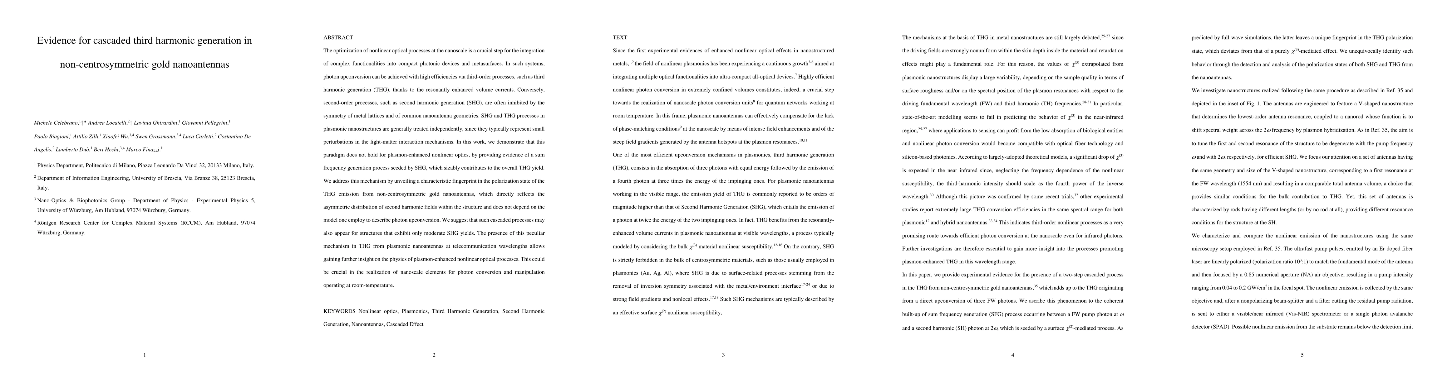 This research demonstrates a cascaded third harmonic generation (THG) process in non-centrosymmetric gold nanoantennas, revealing that THG is significantly fueled by second harmonic generation (SHG) rather than being independent. This finding highlights a new mechanism in plasmon-enhanced nonlinear optics that may enhance photon conversion at room temperature.