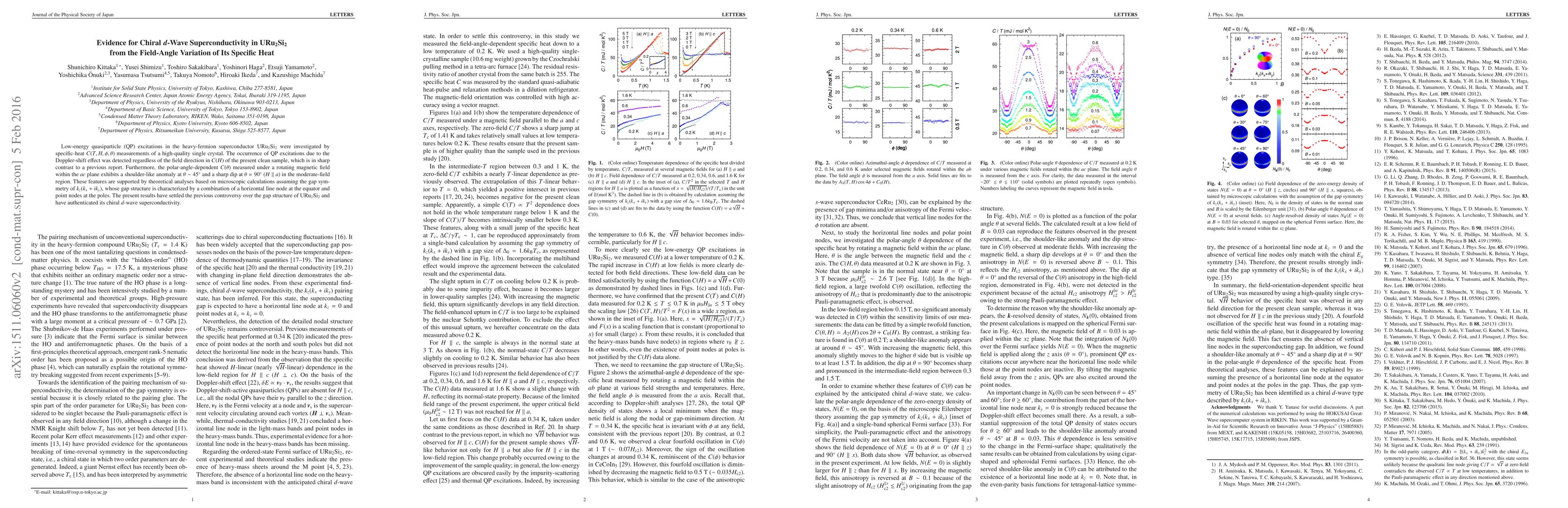 This study confirms chiral d-wave superconductivity in URu$_2$Si$_2$ through specific-heat measurements revealing quasiparticle excitations and angle-dependent anomalies, supporting a gap structure with horizontal and point nodes. The findings resolve prior debates on the superconducting pairing symmetry in this material.