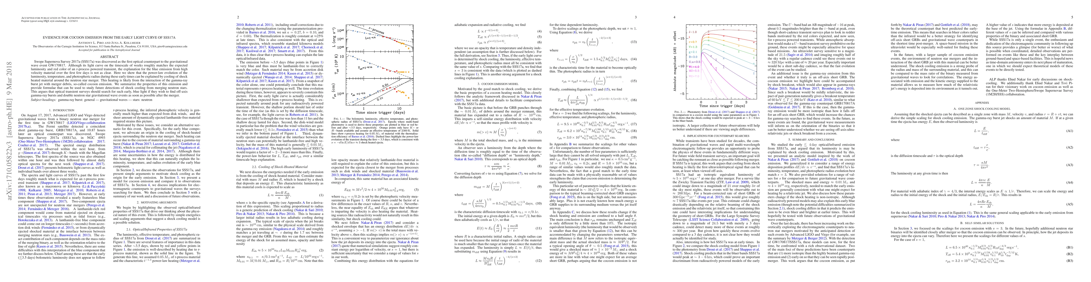 Swope Supernova Survey 2017a (SSS17a) was discovered as the first optical counterpart to the gravitational wave event GW170817. Although its light curve on the timescale of weeks roughly matches the expected luminosity and red color of an r-process powered transient, the explanation for the blue emission from high velocity material over the first few days is not as clear. Here we show that the power-law evolution of the luminosity, temperature, and photospheric radius during these early times can be explained by cooling of shock heated material around the neutron star merger. This heating is likely from the interaction of the gamma-ray burst jet with merger debris, so-called cocoon emission. We summarize the properties of this emission and provide formulae that can be used to study future detections of shock cooling from merging neutron stars. This argues that optical transient surveys should search for such early, blue light if they wish to find off-axis gamma-ray bursts and double neutron star gravitational wave events as soon as possible after the merger.