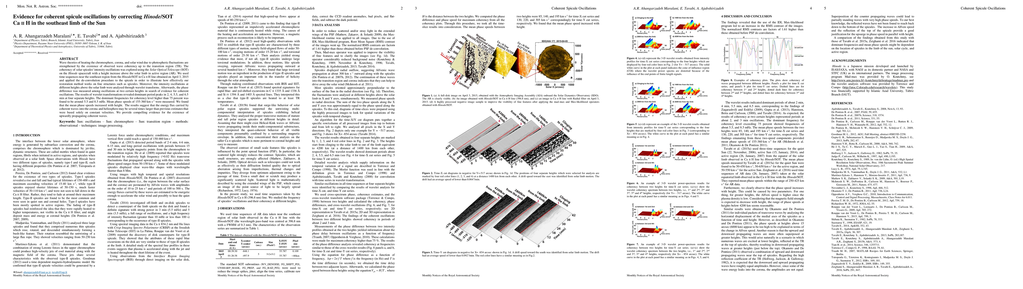 Wave theories of heating the chromosphere, corona, and solar wind due to photospheric fluctuations are strengthened by the existence of observed wave coherency up to the transition region (TR). The coherency of solar spicules' intensity oscillations was explored using the Solar Optical Telescope (SOT) on the Hinode spacecraft with a height increase above the solar limb in active region (AR). We used time sequences near the southeast region from the Hinode/SOT in Ca II H line obtained on April 3, 2015 and applied the de-convolution procedure to the spicule in order to illustrate how effectively our restoration method works on fine structures such as spicules. Moreover, the intensity oscillations at different heights above the solar limb were analysed through wavelet transforms. Afterwards, the phase difference was measured among oscillations at two certain heights in search of evidence for coherent oscillations. The results of wavelet transformations revealed dominant period peaks in 2, 4, 5.5, and 6.5 min at four separate heights. The dominant frequencies for coherency level higher than 75 percent was found to be around 5.5 and 8.5 mHz. Mean phase speeds of 155-360 km s-1 were measured. We found that the mean phase speeds increased with height. The results suggest that the energy flux carried by coherent waves into the corona and heliosphere may be several times larger than previous estimates that were based solely on constant velocities. We provide compelling evidence for the existence of upwardly propagating coherent waves.