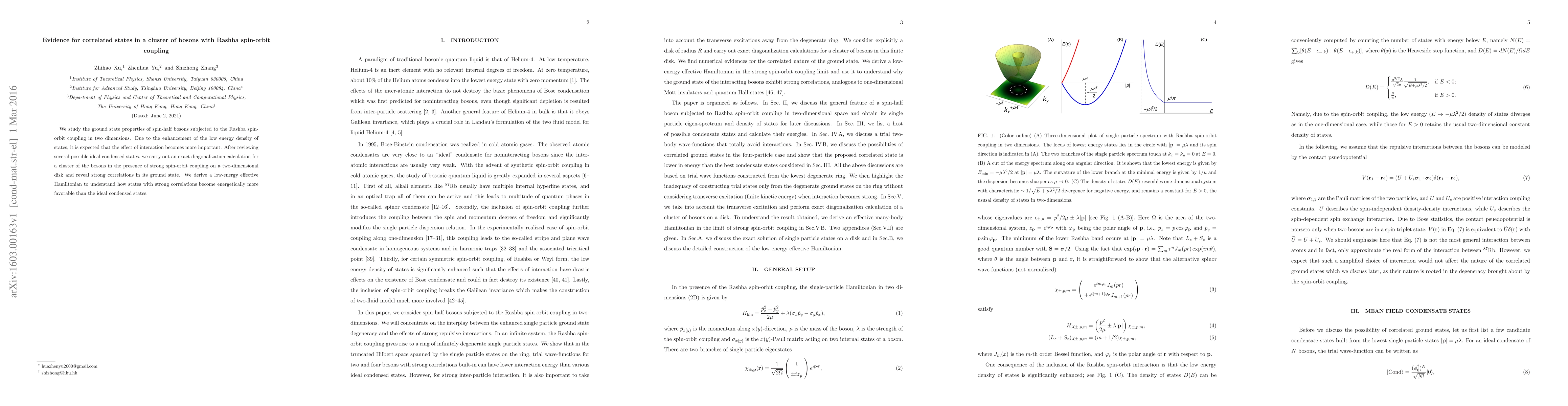 We study the ground state properties of spin-half bosons subjected to the Rashba spin-orbit coupling in two dimensions. Due to the enhancement of the low energy density of states, it is expected that the effect of interaction becomes more important. After reviewing several possible ideal condensed states, we carry out an exact diagonalization calculation for a cluster of the bosons in the presence of strong spin-orbit coupling on a two-dimensional disk and reveal strong correlations in its ground state. We derive a low-energy effective Hamiltonian to understand how states with strong correlations become energetically more favorable than the ideal condensed states.