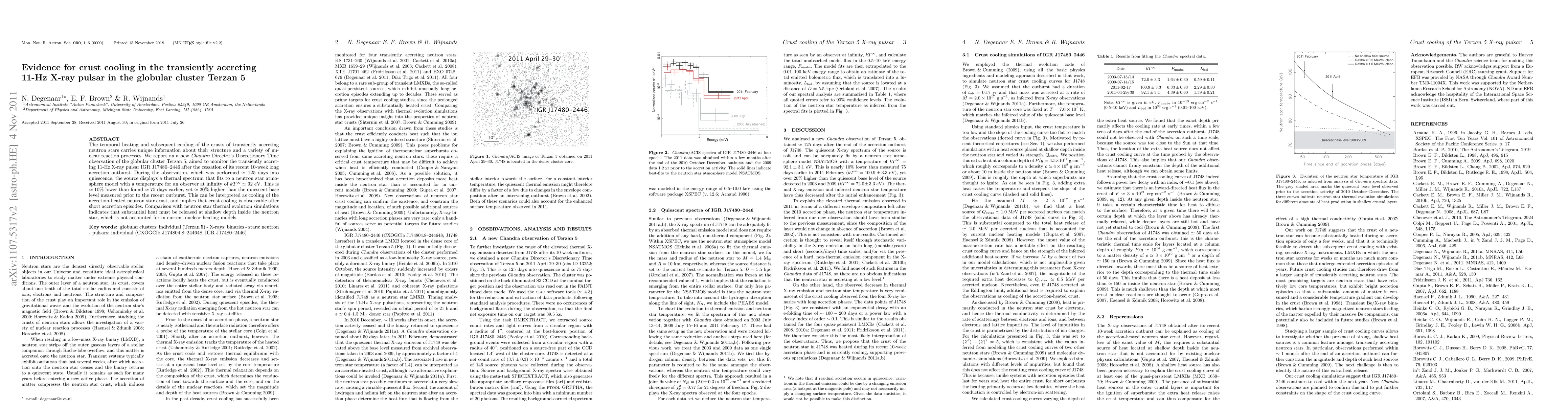 The temporal heating and subsequent cooling of the crusts of transiently accreting neutron stars carries unique information about their structure and a variety of nuclear reaction processes. We report on a new Chandra Director's Discretionary Time observation of the globular cluster Terzan 5, aimed to monitor the transiently accreting 11-Hz X-ray pulsar IGR J17480-2446 after the cessation of its recent 10-week long accretion outburst. During the observation, which was performed ~125 days into quiescence, the source displays a thermal spectrum that fits to a neutron star atmosphere model with a temperature for an observer at infinity of kT~92 eV. This is ~10% lower than found ~75 days earlier, yet ~20% higher than the quiescent base level measured prior to the recent outburst. This can be interpreted as cooling of the accretion-heated neutron star crust, and implies that crust cooling is observable after short accretion episodes. Comparison with neutron star thermal evolution simulations indicates that substantial heat must be released at shallow depth inside the neutron star, which is not accounted for in current nuclear heating models.