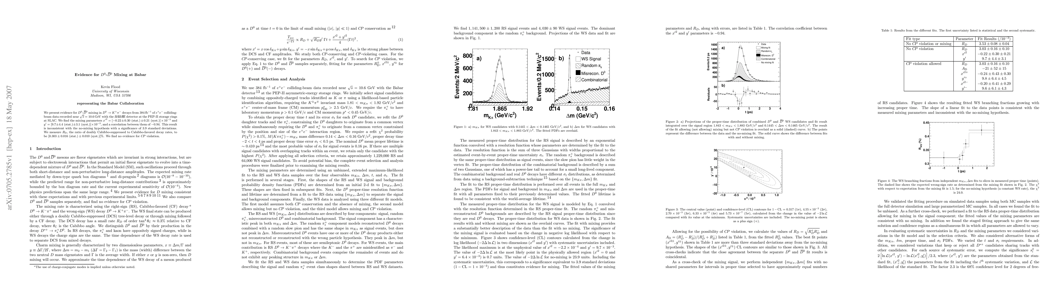 The Babar experiment provides evidence for D0-D0bar mixing in $D^0 \to K^{+}\pi^{-}$ decays with a significance of 3.9 standard deviations, indicating a non-zero mixing parameter. No evidence for CP violation was found.