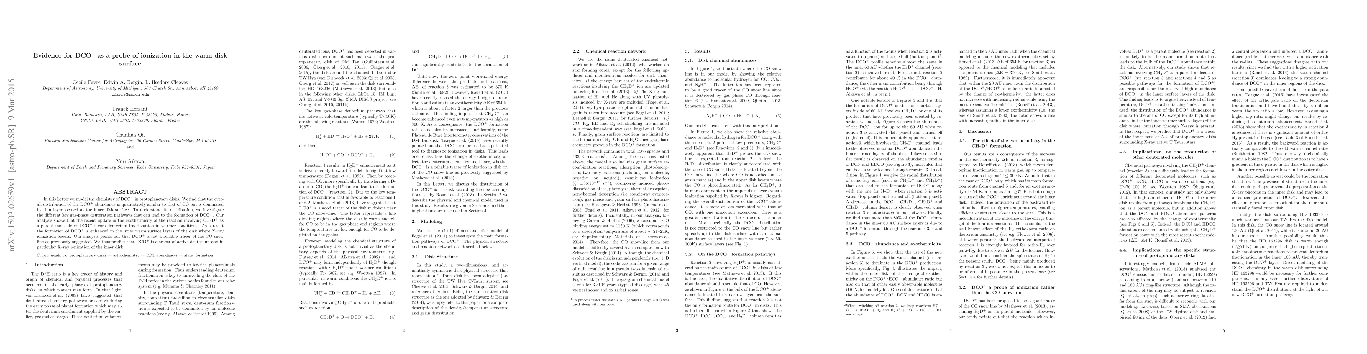 This study models DCO+ chemistry in protoplanetary disks and finds it's a tracer of X-ray ionization in the inner disk surface, not just CO snow line formation.