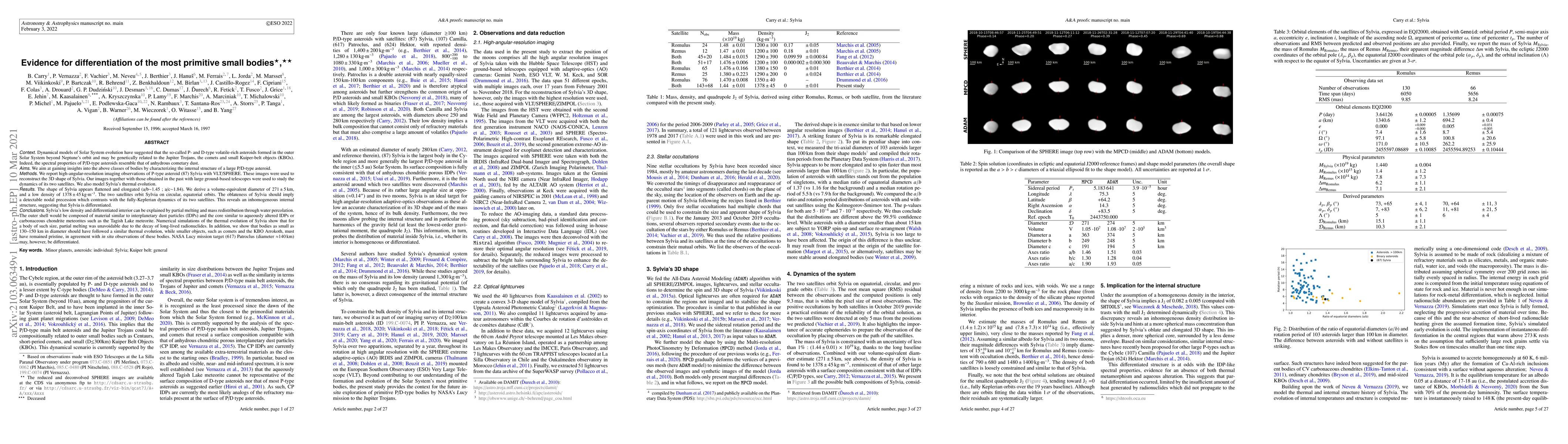 The study of asteroid (87) Sylvia reveals evidence of differentiation into a distinct core and outer shell, with implications for the formation and evolution of small bodies in the Solar System.