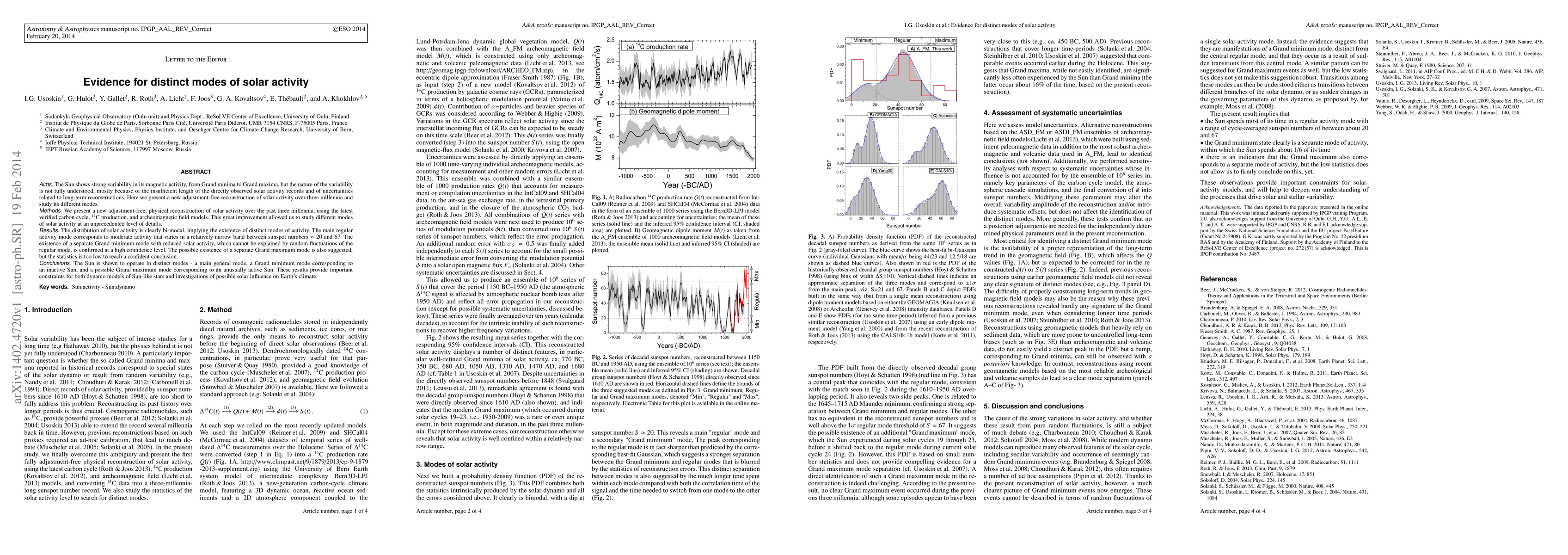 Aims. The Sun shows strong variability in its magnetic activity, from Grand minima to Grand maxima, but the nature of the variability is not fully understood, mostly because of the insufficient length of the directly observed solar activity records and of uncertainties related to long-term reconstructions. Here we present a new adjustment-free reconstruction of solar activity over three millennia and study its different modes. Methods. We present a new adjustment-free, physical reconstruction of solar activity over the past three millennia, using the latest verified carbon cycle, 14C production, and archeomagnetic field models. This great improvement allowed us to study different modes of solar activity at an unprecedented level of details. Results. The distribution of solar activity is clearly bi-modal, implying the existence of distinct modes of activity. The main regular activity mode corresponds to moderate activity that varies in a relatively narrow band between sunspot numbers about 20 and 67. The existence of a separate Grand minimum mode with reduced solar activity, which cannot be explained by random fluctuations of the regular mode, is confirmed at a high confidence level. The possible existence of a separate Grand maximum mode is also suggested, but the statistics is too low to reach a confident conclusion. Conclusions. The Sun is shown to operate in distinct modes - a main general mode, a Grand minimum mode corresponding to an inactive Sun, and a possible Grand maximum mode corresponding to an unusually active Sun. These results provide important constraints for both dynamo models of Sun-like stars and investigations of possible solar influence on Earth's climate.