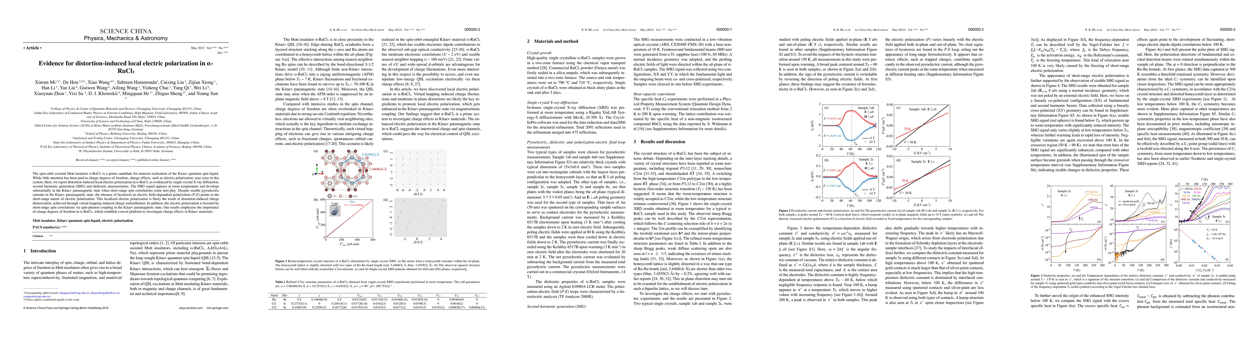 The research reveals distortion-induced local electric polarization in $\alpha$-RuCl$_3$, evidenced by X-ray diffraction, SHG, and dielectric measurements, suggesting charge dimerization and spin-phonon coupling effects in the Kitaev paramagnetic state. This highlights the significance of charge degrees of freedom in this candidate Kitaev quantum spin liquid material.