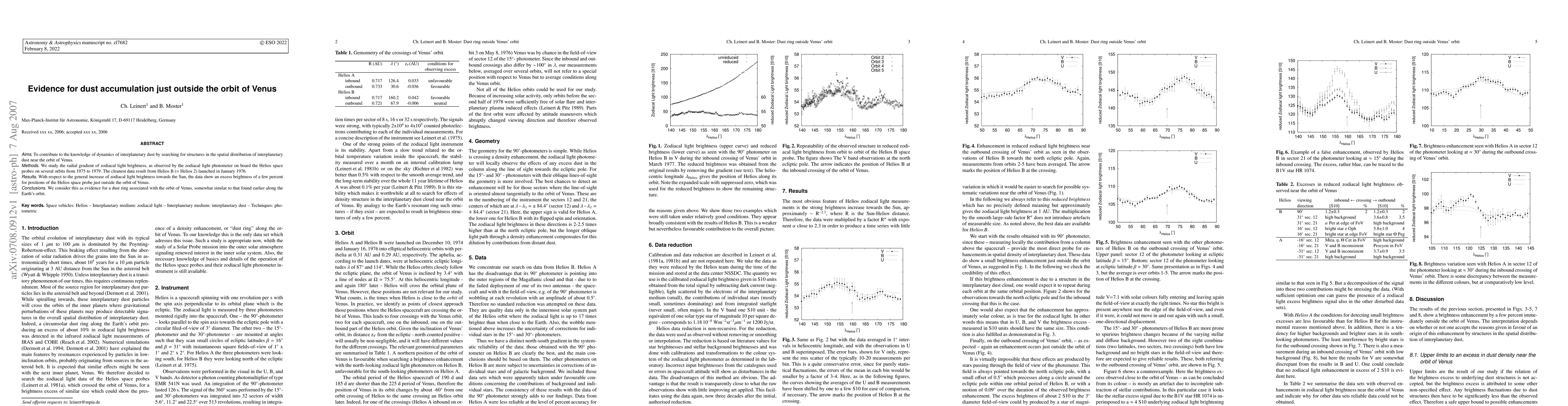 The research identifies an unusual accumulation of interplanetary dust, an excess brightness of a few percent, just outside the orbit of Venus using Helios B spacecraft data from 1976-1979. This is suggested as evidence for a Venus-associated dust ring, analogous to one near Earth's orbit.