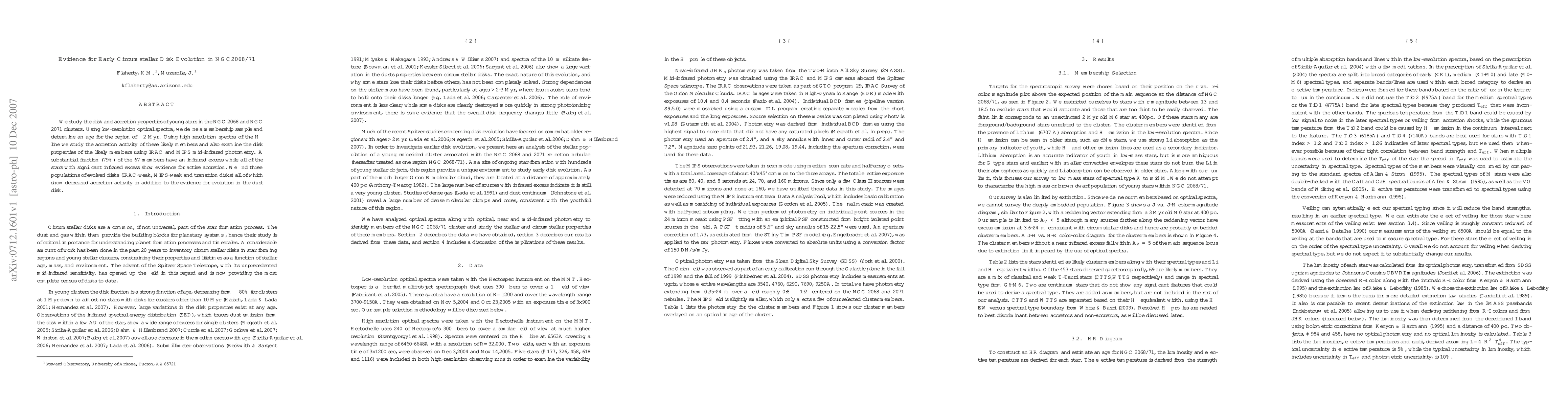 The study examines young stars in NGC 2068/71 clusters, finding 79% have infrared excess indicating disk presence. High-resolution H-alpha spectra reveal decreased accretion in disks showing evolution, categorizing three disk populations based on IRAC and MIPS photometry.
