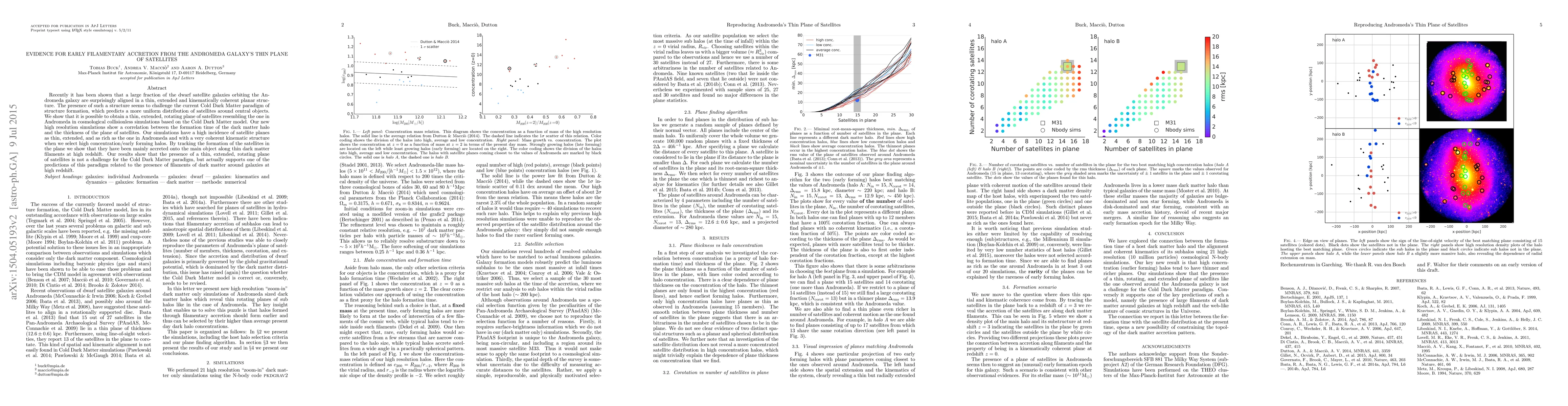 This paper demonstrates that the thin plane of satellite galaxies around Andromeda can be explained by early filamentary accretion in high-concentration dark matter halos, supporting the Cold Dark Matter model rather than challenging it. Simulations show that such planes form when satellites accrete along dark matter filaments at high redshift.