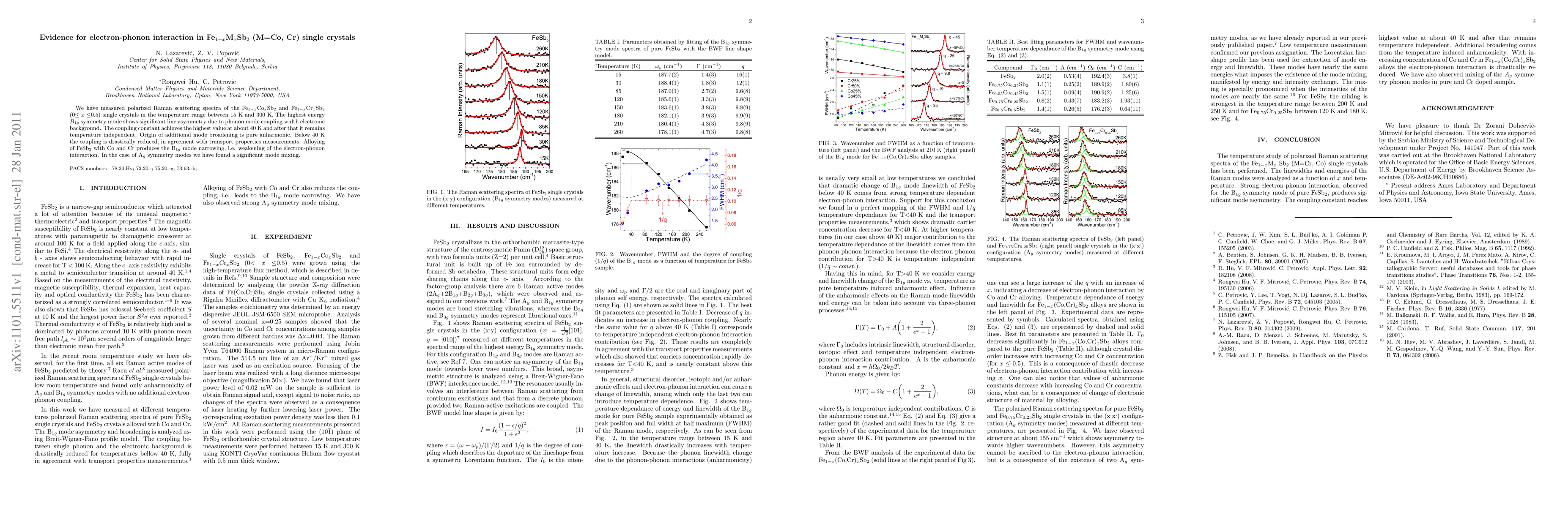 This study investigates polarized Raman scattering in Fe$_{1-x}$M$_{x}$Sb$_{2}$ (M=Co, Cr) single crystals, revealing significant electron-phonon interaction in the $B_{1g}$ symmetry mode, with peak coupling at around 40 K. Alloying with Co and Cr weakens this interaction, leading to mode narrowing.