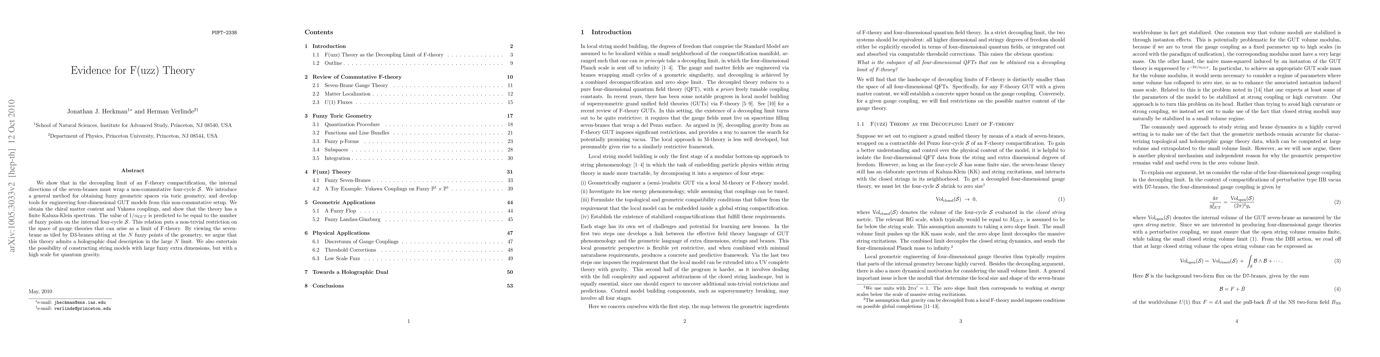 We show that in the decoupling limit of an F-theory compactification, the internal directions of the seven-branes must wrap a non-commutative four-cycle S. We introduce a general method for obtaining fuzzy geometric spaces via toric geometry, and develop tools for engineering four-dimensional GUT models from this non-commutative setup. We obtain the chiral matter content and Yukawa couplings, and show that the theory has a finite Kaluza-Klein spectrum. The value of 1/alpha_(GUT) is predicted to be equal to the number of fuzzy points on the internal four-cycle S. This relation puts a non-trivial restriction on the space of gauge theories that can arise as a limit of F-theory. By viewing the seven-brane as tiled by D3-branes sitting at the N fuzzy points of the geometry, we argue that this theory admits a holographic dual description in the large N limit. We also entertain the possibility of constructing string models with large fuzzy extra dimensions, but with a high scale for quantum gravity.