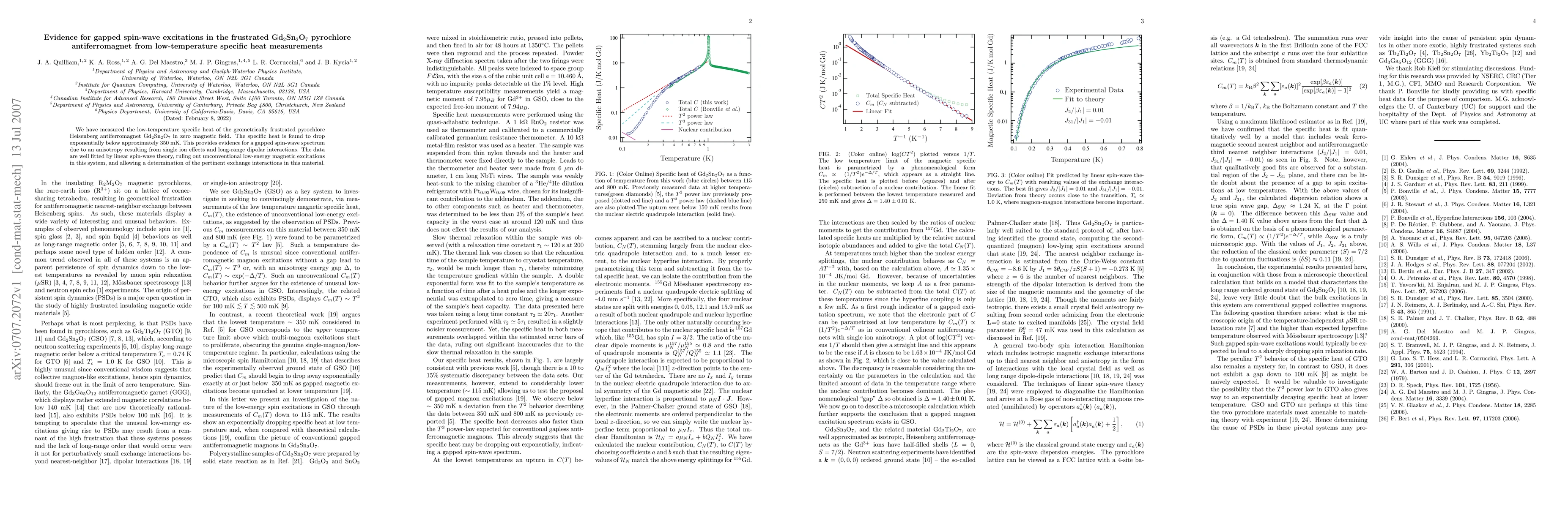 This study reveals that the specific heat of Gd2Sn2O7 drops exponentially below 350 mK, indicating a gapped spin-wave spectrum due to anisotropy from single ion effects and dipolar interactions. The findings support linear spin-wave theory and exclude unconventional magnetic excitations, enabling the determination of exchange interactions.