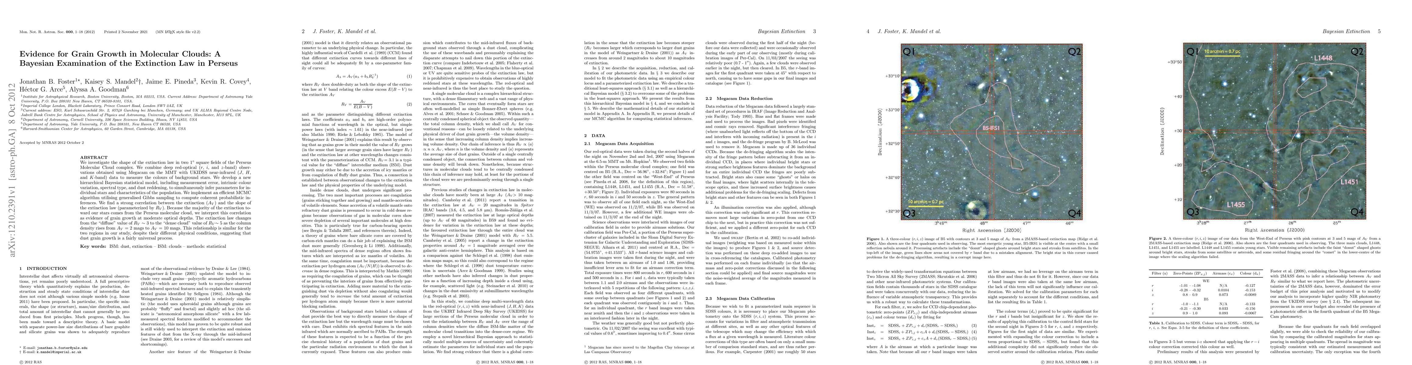 We investigate the shape of the extinction law in two 1-degree square fields of the Perseus Molecular Cloud complex. We combine deep red-optical (r, i, and z-band) observations obtained using Megacam on the MMT with UKIDSS near-infrared (J, H, and K-band) data to measure the colours of background stars. We develop a new hierarchical Bayesian statistical model, including measurement error, intrinsic colour variation, spectral type, and dust reddening, to simultaneously infer parameters for individual stars and characteristics of the population. We implement an efficient MCMC algorithm utilising generalised Gibbs sampling to compute coherent probabilistic inferences. We find a strong correlation between the extinction (Av) and the slope of the extinction law (parameterized by Rv). Because the majority of the extinction toward our stars comes from the Perseus molecular cloud, we interpret this correlation as evidence of grain growth at moderate optical depths. The extinction law changes from the diffuse value of Rv = 3 to the dense cloud value of Rv = 5 as the column density rises from Av = 2 mags to Av = 10 mags. This relationship is similar for the two regions in our study, despite their different physical conditions, suggesting that dust grain growth is a fairly universal process.