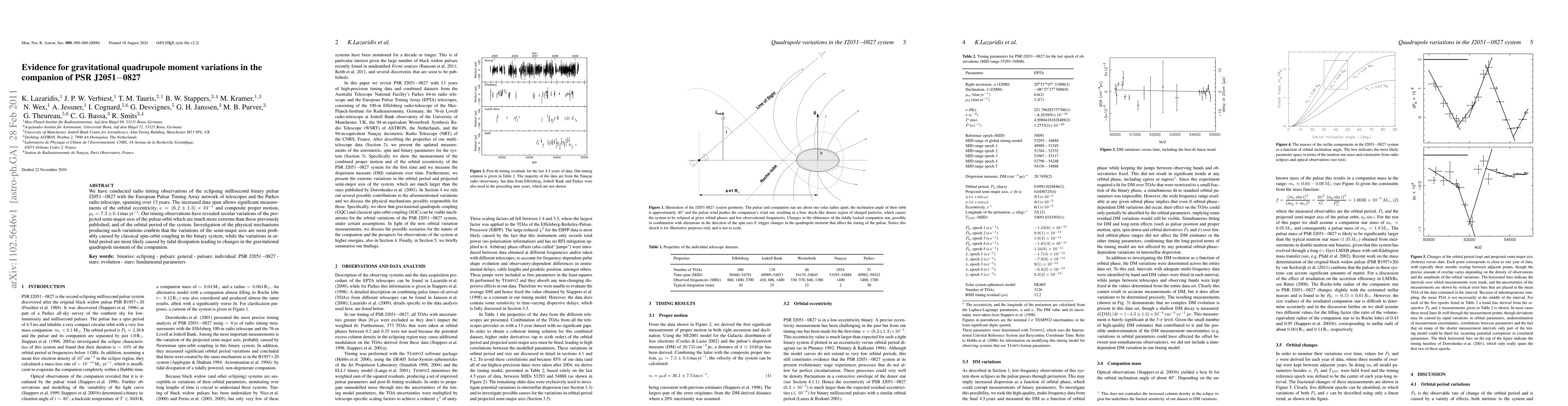 We have conducted radio timing observations of the eclipsing millisecond binary pulsar J2051-0827 with the European Pulsar Timing Array network of telescopes and the Parkes radio telescope, spanning over 13 years. The increased data span allows significant measurements of the orbital eccentricity, e = (6.2 {\pm} 1.3) {\times} 10^{-5} and composite proper motion, {\mu}_t = 7.3 {\pm} 0.4 mas/yr. Our timing observations have revealed secular variations of the projected semi-major axis of the pulsar orbit which are much more extreme than those previously published; and of the orbital period of the system. Investigation of the physical mechanisms producing such variations confirm that the variations of the semi-major axis are most probably caused by classical spin-orbit coupling in the binary system, while the variations in orbital period are most likely caused by tidal dissipation leading to changes in the gravitational quadrupole moment of the companion.