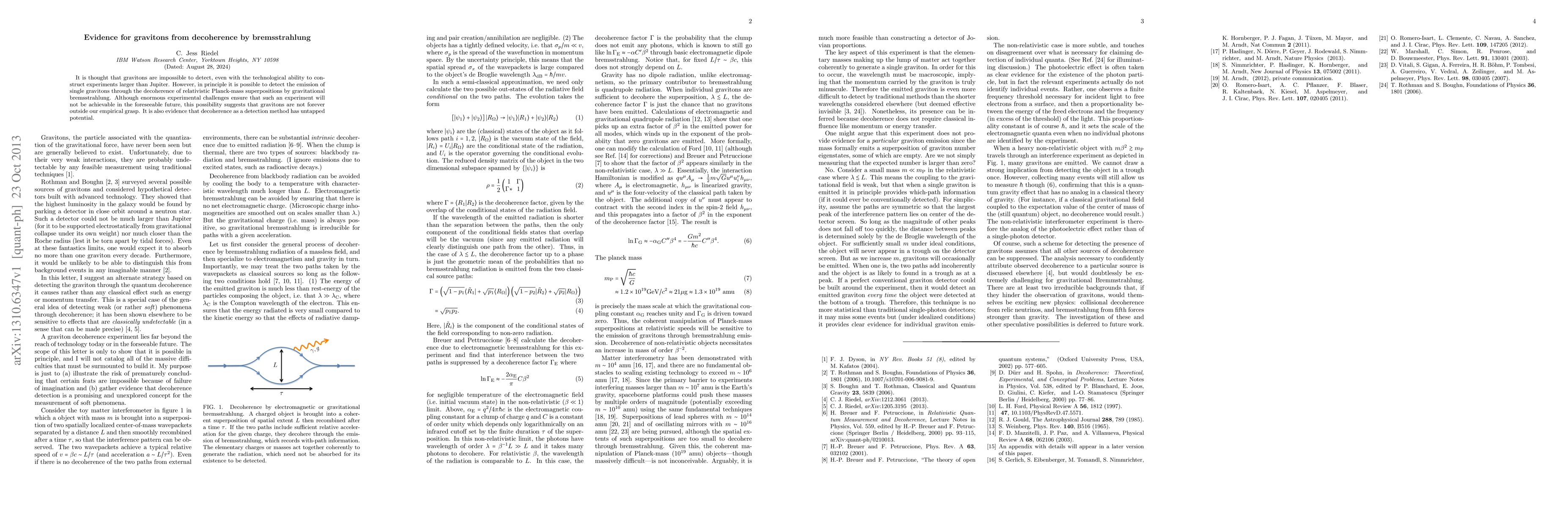 It is thought that gravitons are impossible to detect, even with the technological ability to construct experiments larger than Jupiter. However, in principle it is possible to detect the emission of single gravitons through the decoherence of relativistic Planck-mass superpositions by gravitational bremsstrahlung. Although enormous experimental challenges ensure that such an experiment will not be achievable in the foreseeable future, this possibility suggests that gravitons are not forever outside our empirical grasp. It is also evidence that decoherence as a detection method has untapped potential.
