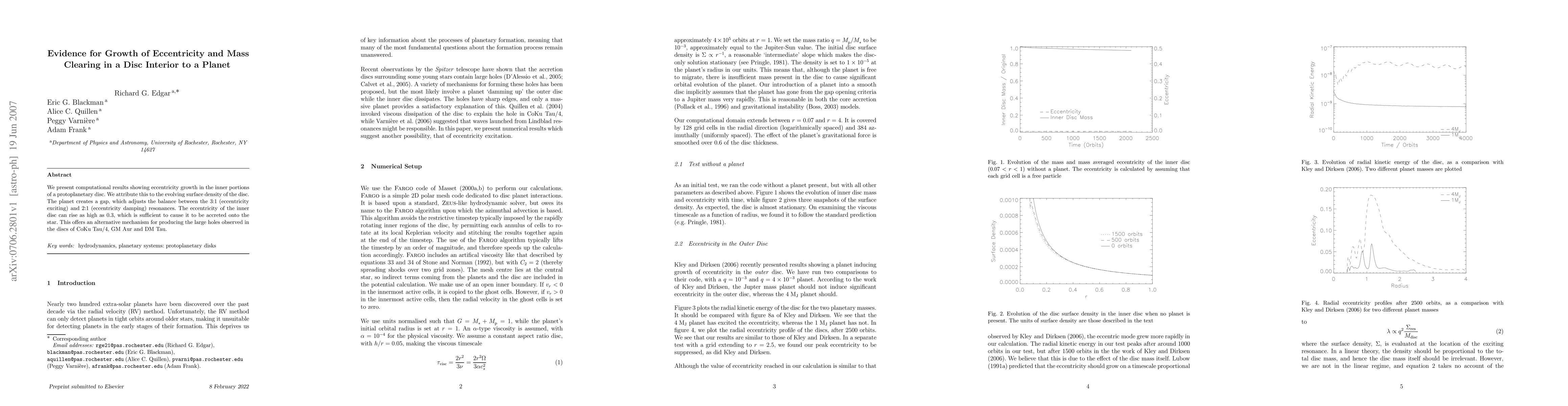 This study demonstrates that eccentricity in the inner regions of a protoplanetary disc increases due to evolving surface density, facilitated by a planet creating a gap that shifts resonance balances. The resulting high eccentricity can lead to disc material being accreted onto the star, providing a mechanism for the large gaps seen in discs of young stars like CoKu Tau/4, GM Aur, and DM Tau.