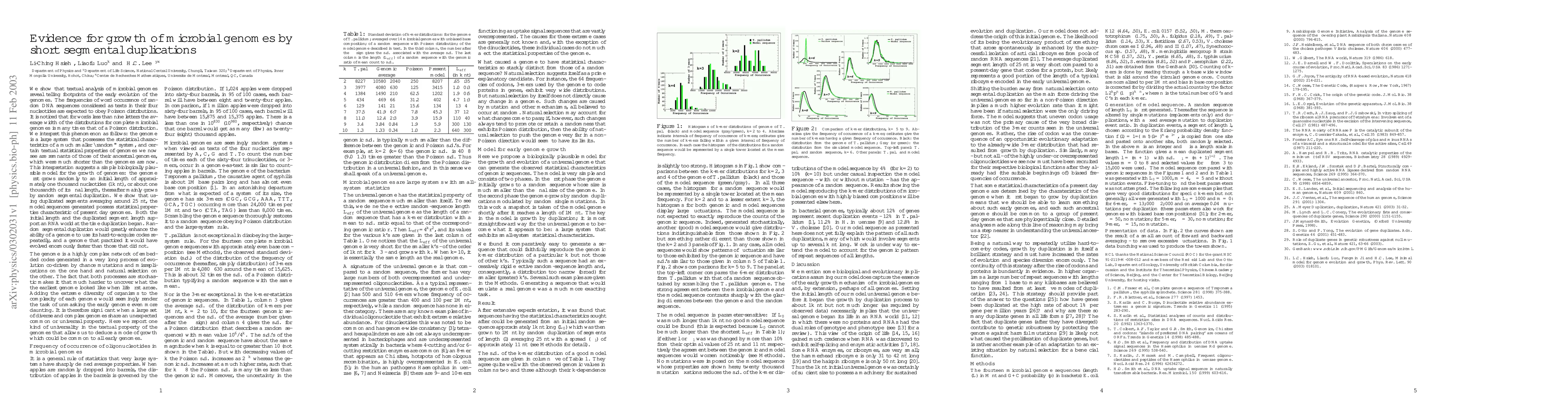 The study provides evidence for the growth of microbial genomes through short segmental duplications, suggesting a biologically plausible model for genome evolution