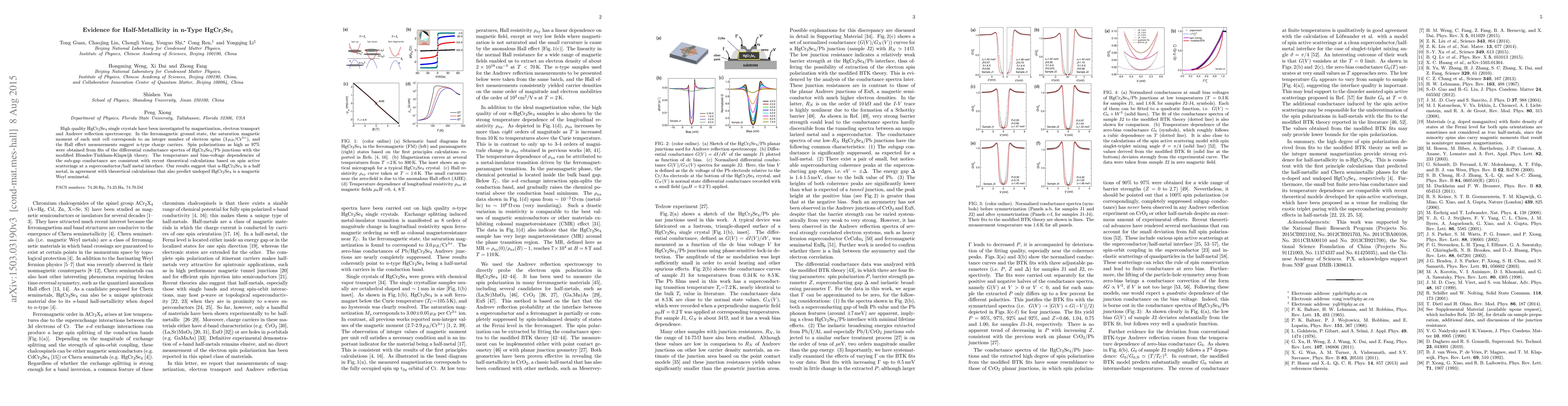 High quality HgCr$_2$Se$_4$ single crystals have been investigated by magnetization, electron transport and Andreev reflection spectroscopy. In the ferromagnetic ground state, the saturation magnetic moment of each unit cell corresponds to an integer number of electron spins (3 $\mu_B$/Cr$^{3+}$), and the Hall effect measurements suggest n-type charge carriers. Spin polarizations as high as $97\%$ were obtained from fits of the differential conductance spectra of HgCr$_2$Se$_4$/Pb junctions with the modified Blonder-Tinkham-Klapwijk (BTK) theory. The temperature and bias-voltage dependencies of the sub-gap conductance are consistent with recent theoretical calculations based on spin active scatterings at a superconductor/half metal interface. Our results suggest that n-HgCr$_2$Se$_4$ is a half metal, in agreement with theoretical calculations that also predict undoped HgCr$_2$Se$_4$ is a magnetic Weyl semimetal.