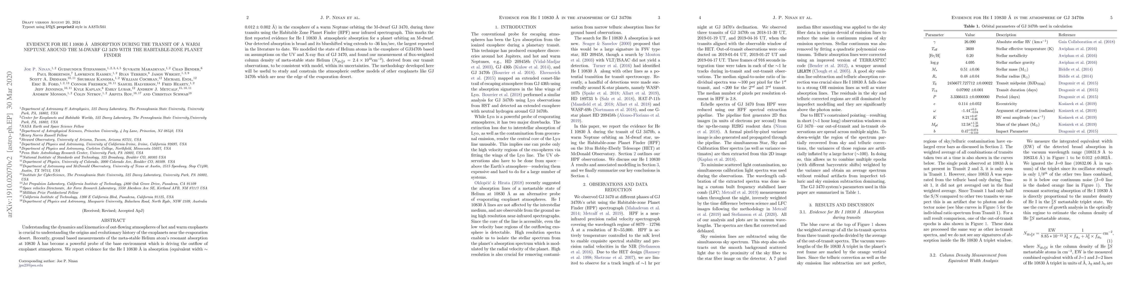 Researchers detected He I 10830 Å absorption in the exosphere of a warm Neptune orbiting the M-dwarf GJ 3470 during transits, marking the first such evidence for an M-dwarf planet. The absorption's broad, blueshifted wing extends to -36 km/sec, the largest observed to date.
