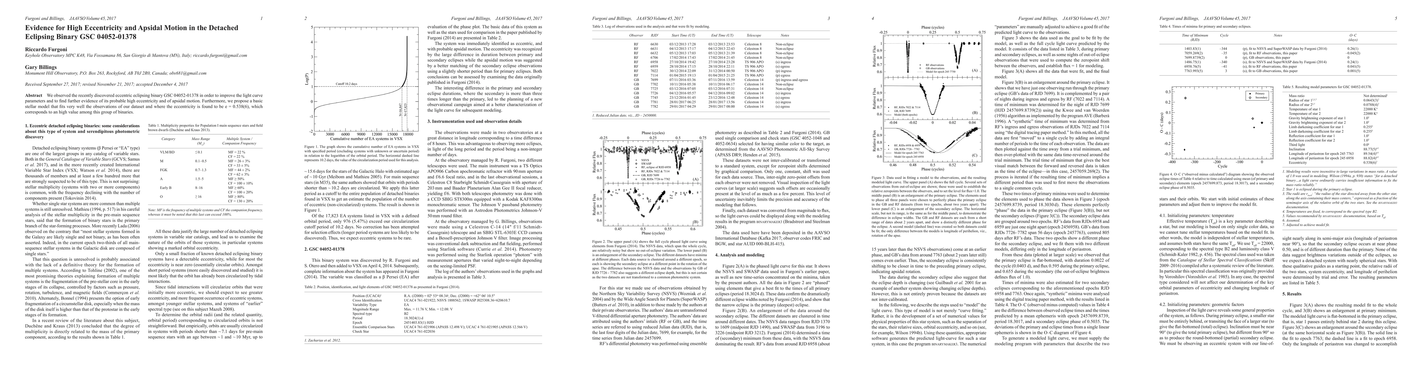 This paper reports observations of the eccentric eclipsing binary GSC 04052-01378, confirming its high eccentricity (e = 0.538(6)) and apsidal motion, and proposes a stellar model that fits the observed light curve parameters well.