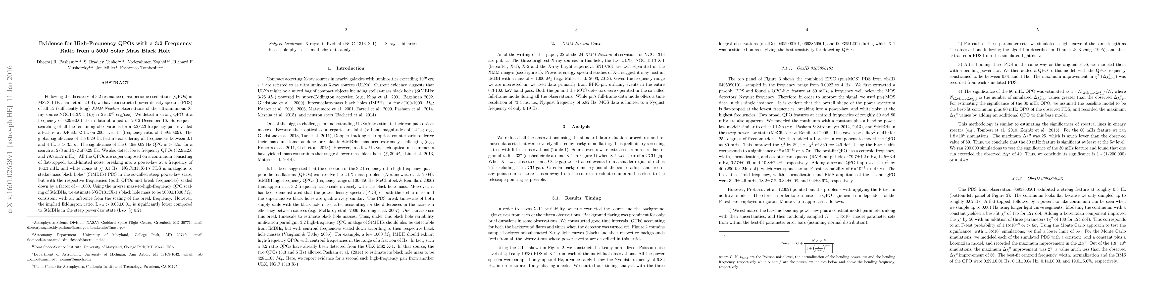 Following the discovery of 3:2 resonance quasi-periodic oscillations (QPOs) in M82X-1 (Pasham et al. 2014), we have constructed power density spectra (PDS) of all 15 (sufficiently long) {\it XMM-Newton} observations of the ultraluminous X-ray source NGC1313X-1 ($L_{X}$ $\approx$ 2$\times$10$^{40}$ erg/sec). We detect a strong QPO at a frequency of 0.29$\pm$0.01 Hz in data obtained on 2012 December 16. Subsequent searching of all the remaining observations for a 3:2/2:3 frequency pair revealed a feature at 0.46$\pm$0.02 Hz on 2003 Dec 13 (frequency ratio of 1.59$\pm$0.09). The global significance of the 0.29 Hz feature considering all frequencies between 0.1 and 4 Hz is $>$ 3.5 $\sigma$. The significance of the 0.46$\pm$0.02 Hz QPO is $>$ 3.5$\sigma$ for a search at 2/3 and 3/2 of 0.29 Hz. We also detect lower frequency QPOs (32.9$\pm$2.6 and 79.7$\pm$1.2 mHz). All the QPOs are super-imposed on a continuum consisting of flat-topped, band-limited noise, breaking into a power-law at a frequency of 16$\pm$3 mHz and white noise at $\gtrsim$ 0.1 Hz. NGC1313X-1's PDS is analogous to stellar-mass black holes' (StMBHs) PDS in the so-called steep power-law state, but with the respective frequencies (both QPOs and break frequencies) scaled down by a factor of $\sim$ 1000. Using the inverse mass-to-high-frequency QPO scaling of StMBHs, we estimate NGC1313X-1's black hole mass to be 5000$\pm$1300 $M_{\odot}$, consistent with an inference from the scaling of the break frequency. However, the implied Eddington ratio, L$_{Edd}$ $>$ 0.03$\pm$0.01, is significantly lower compared to StMBHs in the steep power-law state (L$_{Edd}$ $\gtrsim$ 0.2).