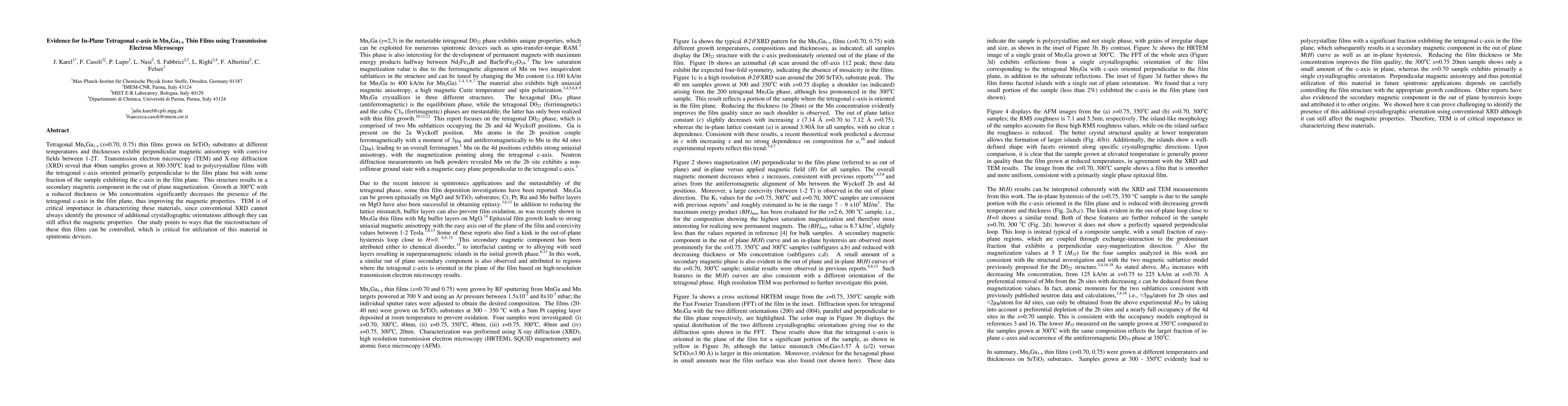 This study uses TEM and XRD to investigate Mn$_x$Ga$_{1-x}$ thin films, finding that films with tetragonal c-axis in the film plane exhibit secondary out-of-plane magnetization, while growth at 300$^{o}$C with reduced thickness or Mn concentration minimizes this effect, enhancing magnetic properties. TEM is crucial for identifying additional crystal orientations affecting magnetism.
