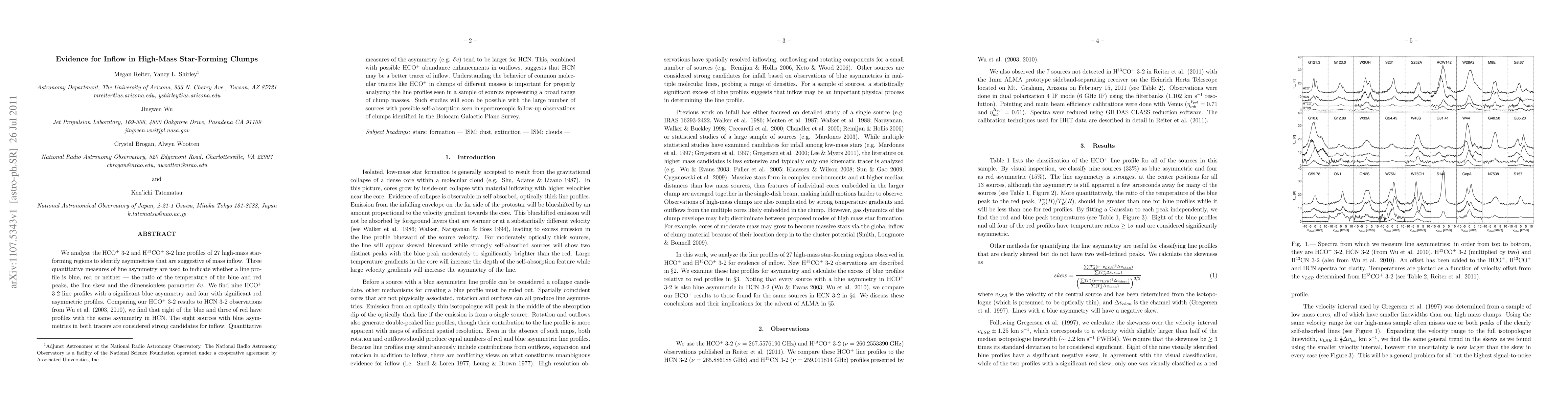 We analyze the HCO+ 3-2 and H13CO+ 3-2 line profiles of 27 high-mass star-forming regions to identify asymmetries that are suggestive of mass inflow. Three quantitative measures of line asymmetry are used to indicate whether a line profile is blue, red or neither - the ratio of the temperature of the blue and red peaks, the line skew and the dimensionless parameter delta_v. We find nine HCO+ 3-2 line profiles with a significant blue asymmetry and four with significant red asymmetric profiles. Comparing our HCO+ 3-2 results to HCN 3-2 observations from Wu et al. (2003, 2010), we find that eight of the blue and three of red have profiles with the same asymmetry in HCN. The eight sources with blue asymmetries in both tracers are considered strong candidates for inflow. Quantitative measures of the asymmetry (e.g. delta_v) tend to be larger for HCN. This, combined with possible HCO+ abundance enhancements in outflows, suggests that HCN may be a better tracer of inflow. Understanding the behavior of common molecular tracers like HCO+ in clumps of different masses is important for properly analyzing the line profiles seen in a sample of sources representing a broad range of clump masses. Such studies will soon be possible with the large number of sources with possible self-absorption seen in spectroscopic follow-up observations of clumps identified in the Bolocam Galactic Plane Survey.