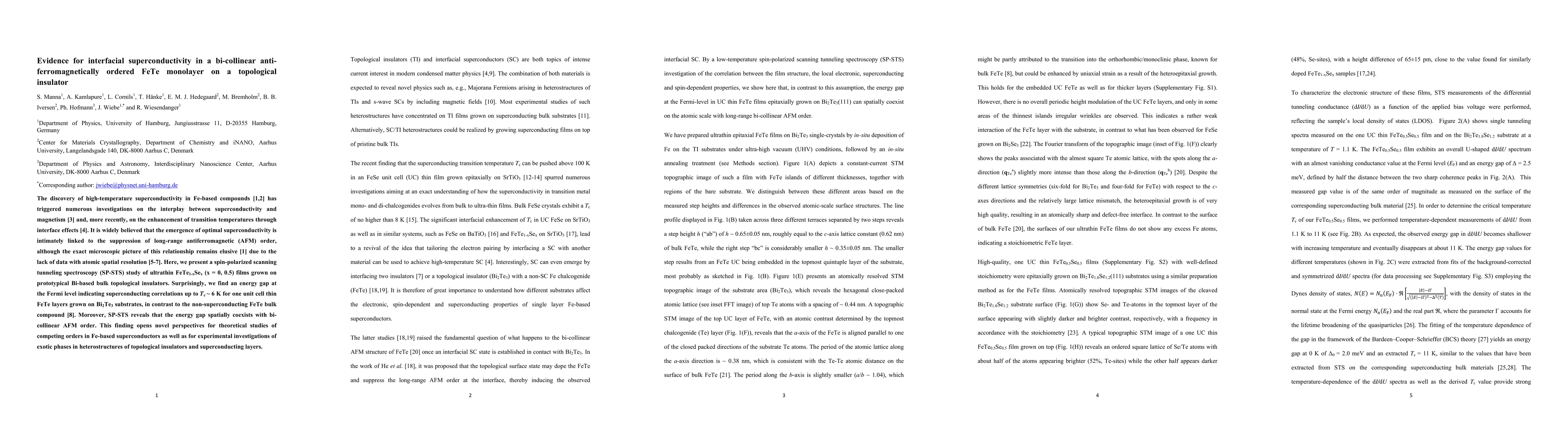 Researchers discovered superconductivity in ultrathin FeTe layers grown on top of a topological insulator, with an energy gap at the Fermi level indicating correlations up to 6 K.