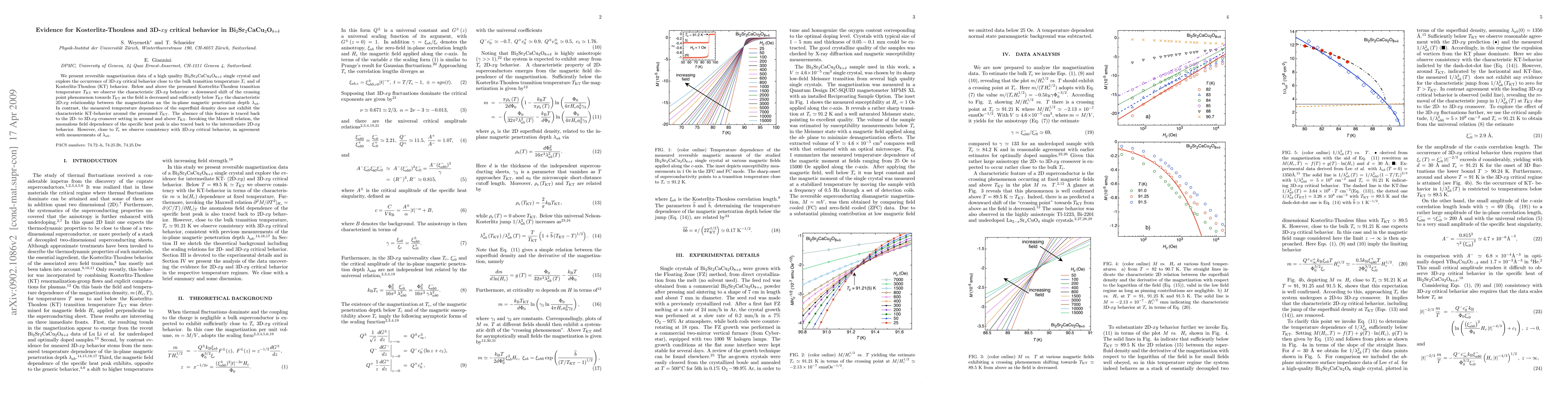 This study investigates the magnetization of a high-quality Bi2212 single crystal, revealing evidence for Kosterlitz-Thouless (KT) and 3D-xy critical behavior near the bulk transition temperature Tc, with the 2D-xy behavior dominating below T_KT. The paper also notes the absence of KT behavior in the superfluid density, attributed to a 2D- to 3D-xy crossover around T_KT.