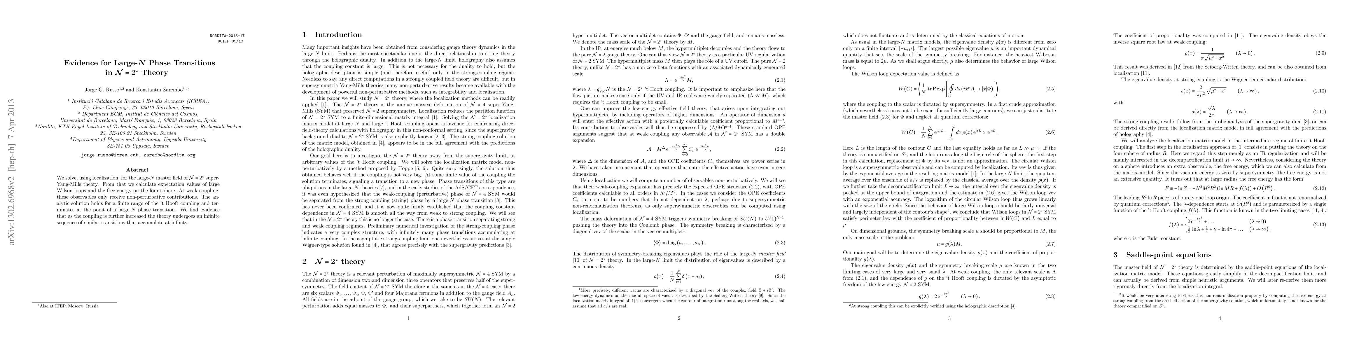 The paper presents a solution for the large-N master field in N=2* super-Yang-Mills theory, revealing non-perturbative contributions at weak coupling. It finds evidence of a large-N phase transition and suggests an infinite sequence of similar transitions accumulating as the coupling increases.