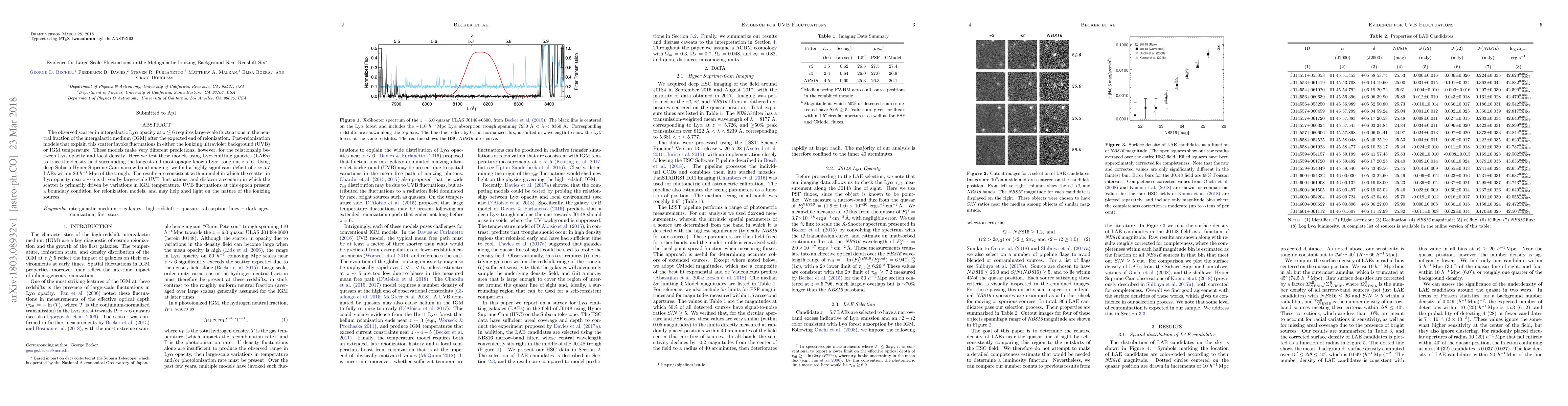 The observed scatter in intergalactic Lyman-$\alpha$ opacity at $z \lesssim 6$ requires large-scale fluctuations in the neutral fraction of the intergalactic medium (IGM) after the expected end of reionization. Post-reionization models that explain this scatter invoke fluctuations in either the ionizing ultraviolet background (UVB) or IGM temperature. These models make very different predictions, however, for the relationship between Lyman-$\alpha$ opacity and local density. Here we test these models using Lyman-$\alpha$ emitting galaxies (LAEs) to trace the density field surrounding the longest and most opaque known Lyman-$\alpha$ trough at $z < 6$. Using deep Subaru Hyper Suprime-Cam narrow-band imaging, we find a highly significant deficit of $z \simeq 5.7$ LAEs within 20 Mpc/$h$ of the trough. The results are consistent with a model in which the scatter in Lyman-$\alpha$ opacity near $z \sim 6$ is driven by large-scale UVB fluctuations, and disfavor a scenario in which the scatter is primarily driven by variations in IGM temperature. UVB fluctuations at this epoch present a boundary condition for reionization models, and may help shed light on the nature of the ionizing sources.