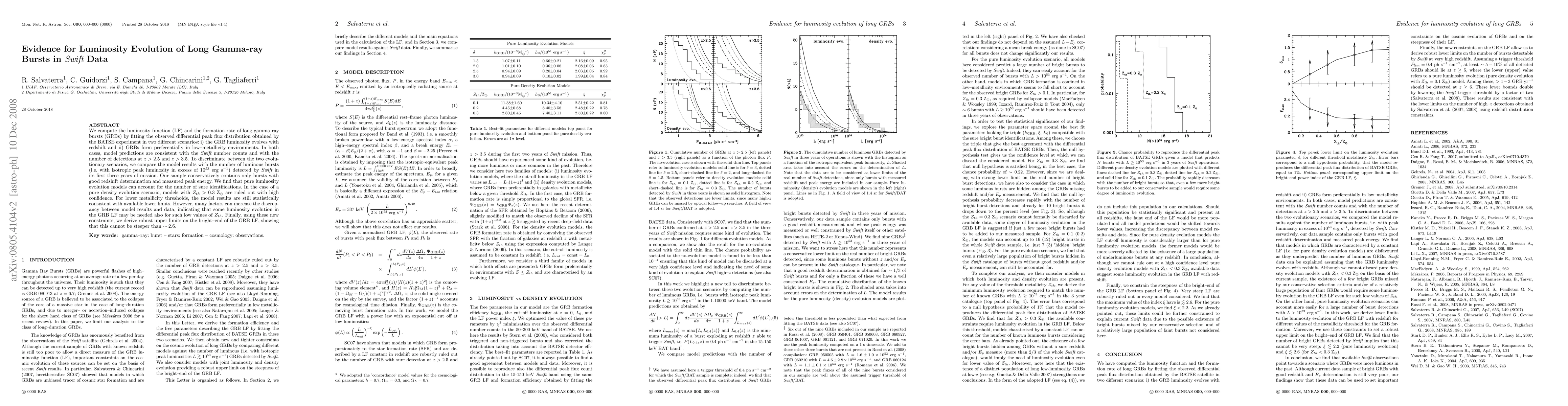 This paper investigates the luminosity evolution of long gamma-ray bursts (GRBs) using Swift data, comparing models of luminosity evolution against those of density evolution in low-metallicity environments. The study finds that luminosity evolution models can account for observed data, while density evolution models with high metallicity thresholds are ruled out, suggesting some degree of luminosity evolution is necessary even for low-metallicity environments.