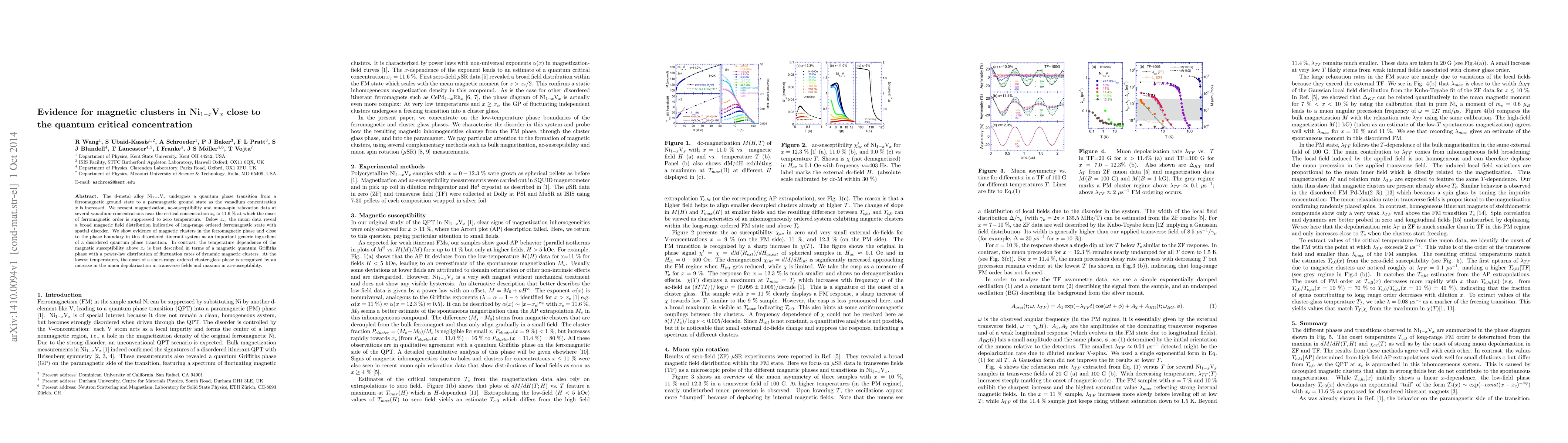 Researchers found magnetic clusters in a material close to its quantum critical concentration, which separates a ferromagnetic state from a paramagnetic state. These clusters were identified using muon-spin relaxation data, revealing evidence of long-range ordered ferromagnetism near the phase boundary.