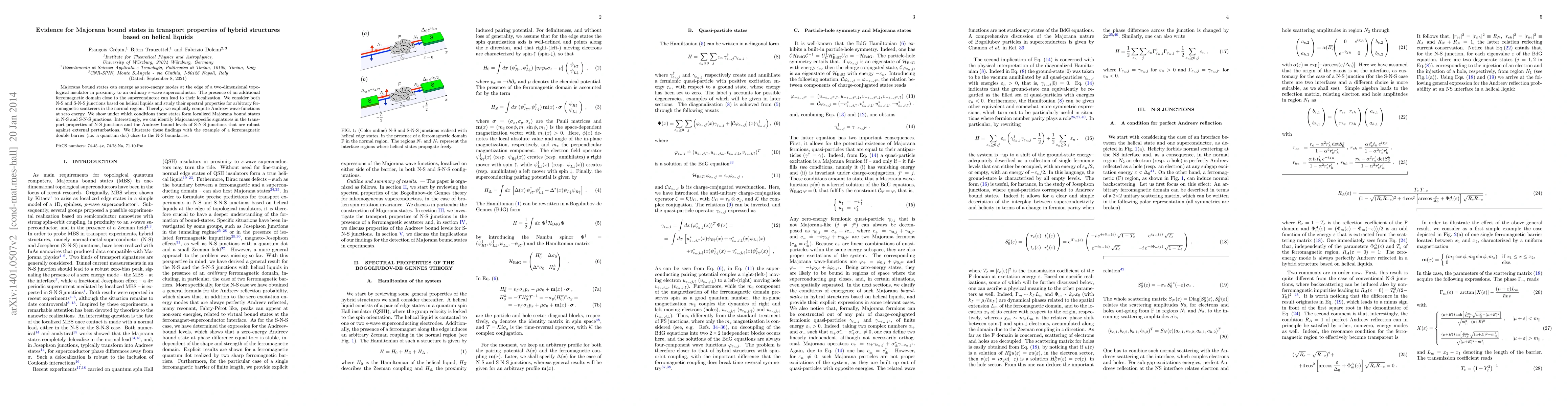 This paper explores the transport properties of hybrid structures combining normal, superconductor, and ferromagnetic domains, demonstrating the emergence of Majorana bound states. It identifies Majorana-specific signatures in N-S junctions and Andreev bound levels in S-N-S junctions, showing robustness against external perturbations.