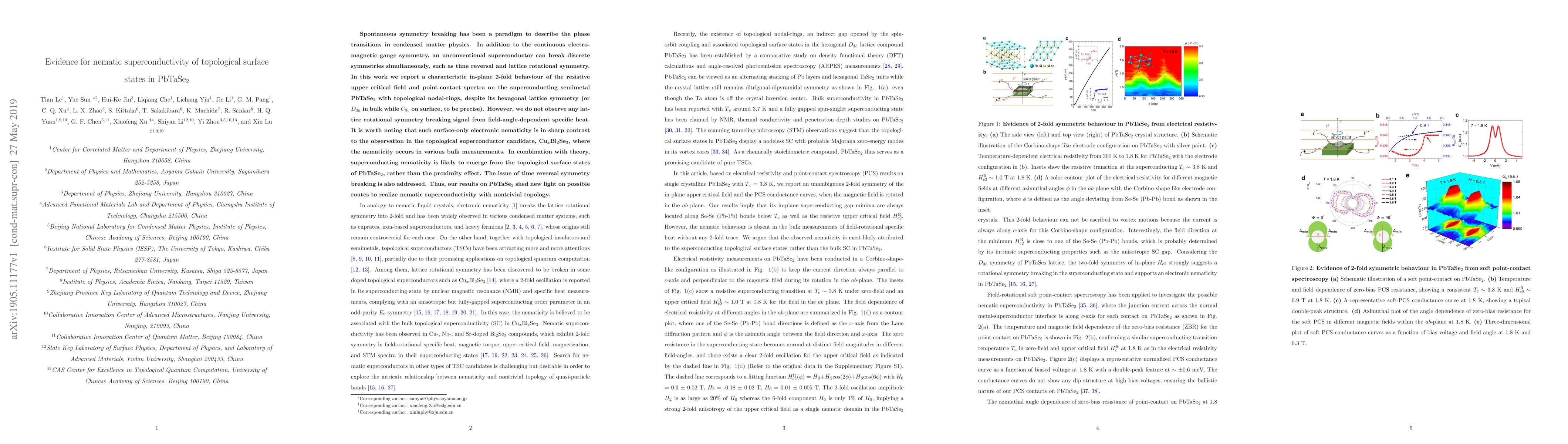 This paper reports nematic superconductivity in PbTaSe2, a superconducting semimetal with topological surface states, characterized by an in-plane 2-fold resistive upper critical field behavior. The study suggests that this nematicity arises from topological surface states rather than proximity effects, providing insights into unconventional superconductivity mechanisms.