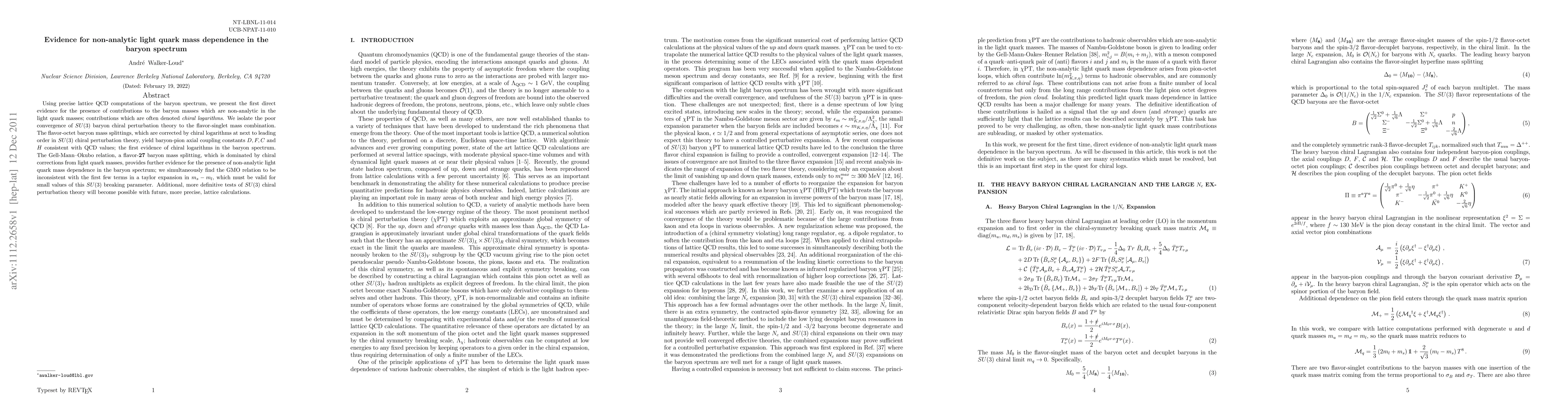 This paper provides the first direct evidence for non-analytic light quark mass dependence in baryon masses, often referred to as "chiral logarithms," using precise lattice QCD computations. The study highlights the poor convergence of SU(3) baryon chiral perturbation theory and finds consistency between flavor-octet baryon mass splittings and QCD values.