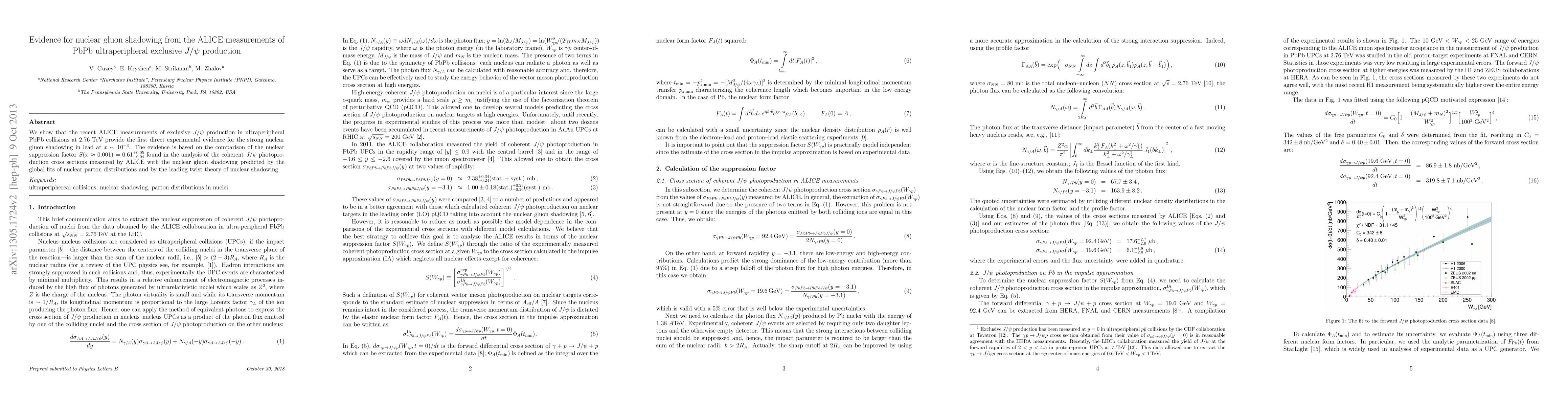 The ALICE measurements of exclusive J/{\psi} production in ultraperipheral PbPb collisions provide the first direct evidence for nuclear gluon shadowing in lead at $x \sim 10^{-3}$, with a suppression factor of S(x ≈ 0.001) = 0.61^{+0.05}_{-0.04}, aligning with predictions from nuclear parton distribution models.