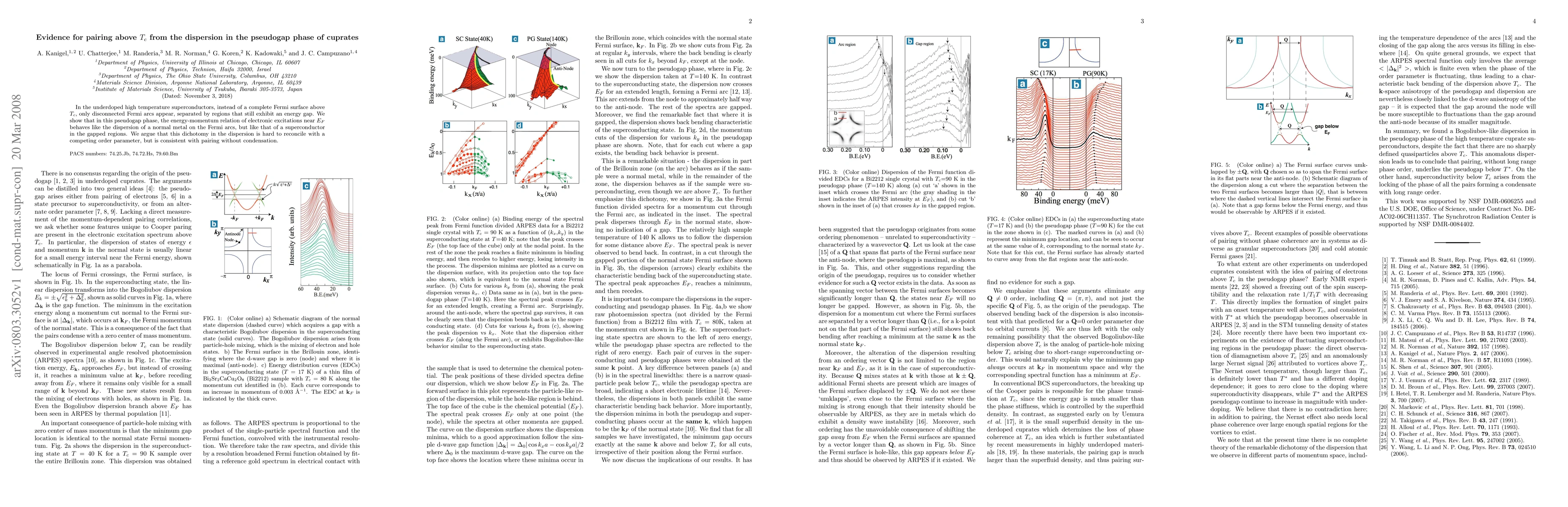 In the underdoped high temperature superconductors, instead of a complete Fermi surface above Tc, only disconnected Fermi arcs appear, separated by regions that still exhibit an energy gap. We show that in this pseudogap phase, the energy-momentum relation of electronic excitations near E_F behaves like the dispersion of a normal metal on the Fermi arcs, but like that of a superconductor in the gapped regions. We argue that this dichotomy in the dispersion is hard to reconcile with a competing order parameter, but is consistent with pairing without condensation.
