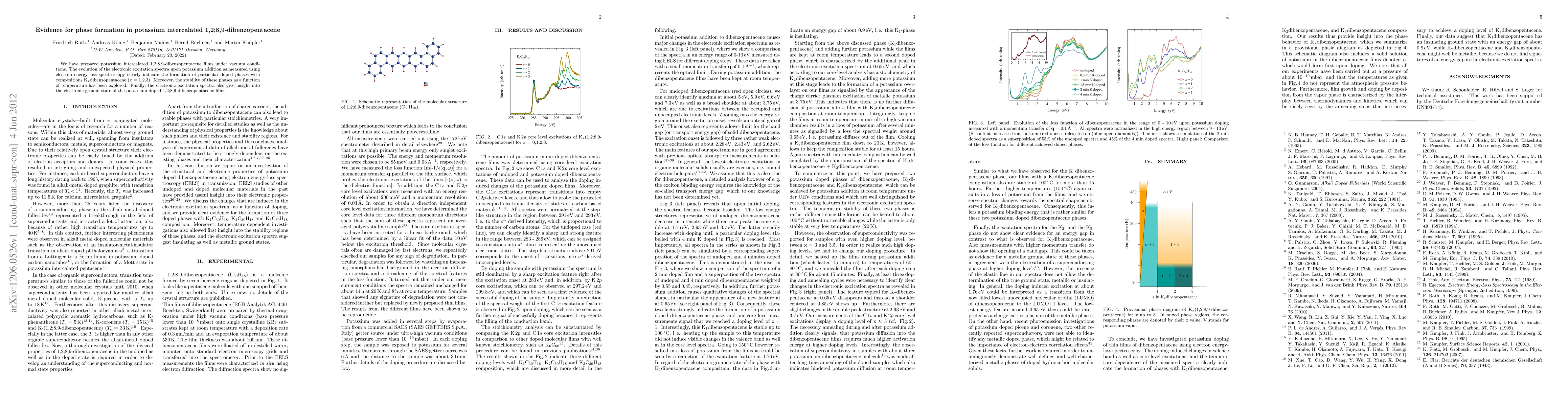 Researchers found that adding potassium to 1,2;8,9-dibenzopentacene creates distinct phases with varying compositions and electronic properties, which were identified using electron energy-loss spectroscopy.