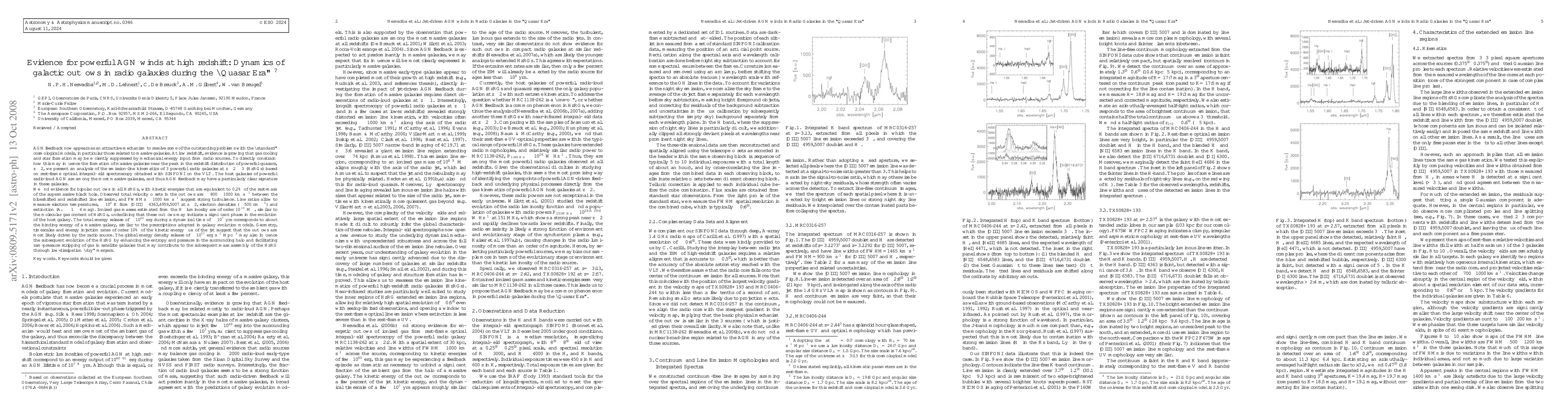This paper investigates the dynamics of galactic outflows in three powerful radio galaxies at high redshift (z~2-3), revealing evidence for bipolar outflows driven by AGN feedback. The outflows exhibit strong turbulence and significant energy release, potentially influencing the evolution of the host galaxies and their surrounding environments.