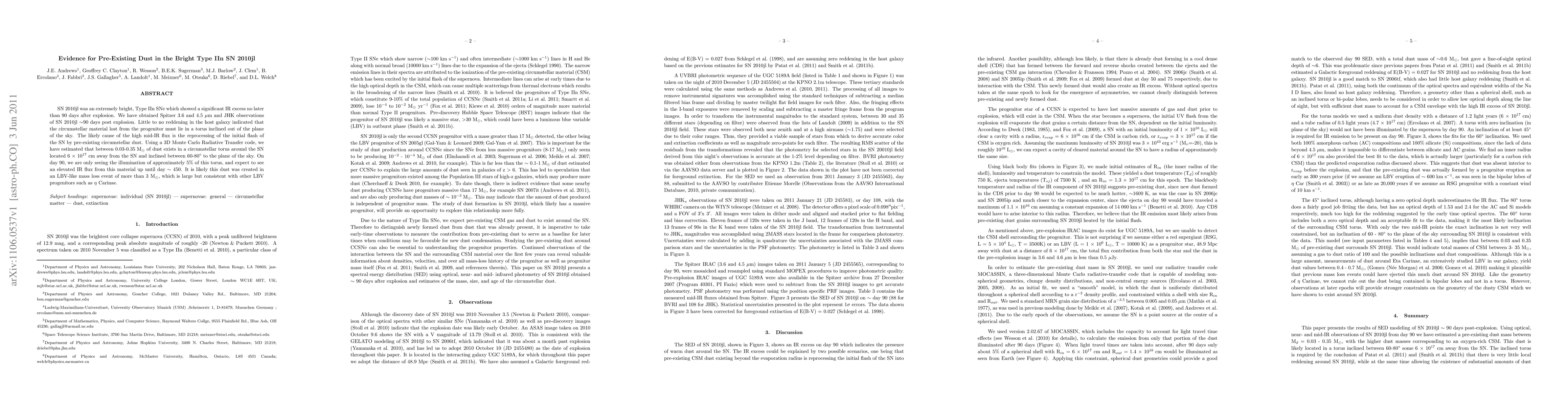 Research on supernova SN 2010jl suggests that pre-existing dust in a circumstellar torus is the cause of its bright infrared emission, with estimated dust masses ranging from 0.03-0.35 Msun.