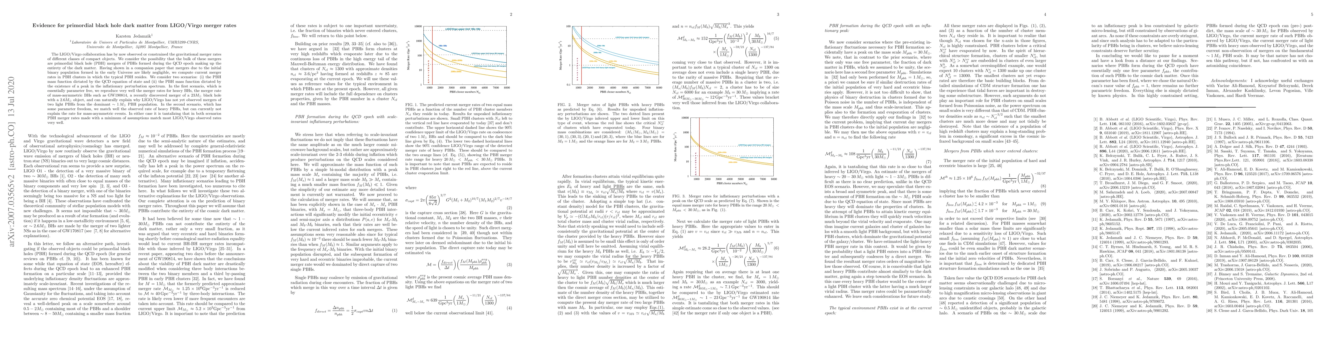 The LIGO/Virgo collaboration's observations suggest that the majority of gravitational merger rates could be from primordial black holes (PBHs) formed during the QCD epoch, potentially constituting all dark matter. Both scenarios considered—PBH mass functions from QCD or inflationary perturbations—match well with observed merger rates, indicating PBHs as a plausible dark matter candidate.